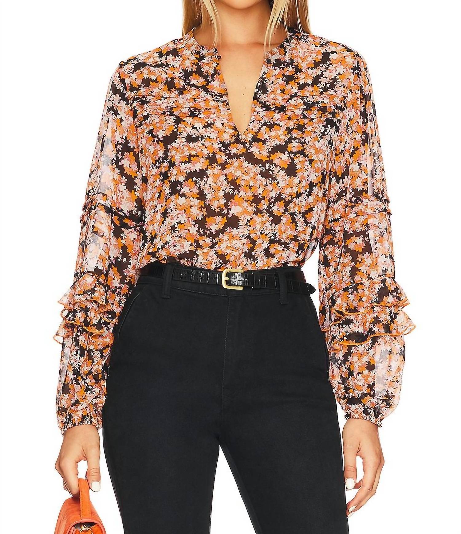 Pair this with your favorite jeans and slides for your next girls night out. This long sleeve blouse is crafted from 100% recycled polyester and features a lightweight chiffon fabric adorned with a captivating floral design. Made in China, it offers a relaxed fit with blouson sleeves and cinched cuffs, providing a touch of sophistication with a V-neckline. Enjoy the effortless pull-on closure, and simply machine wash to keep it looking fresh.