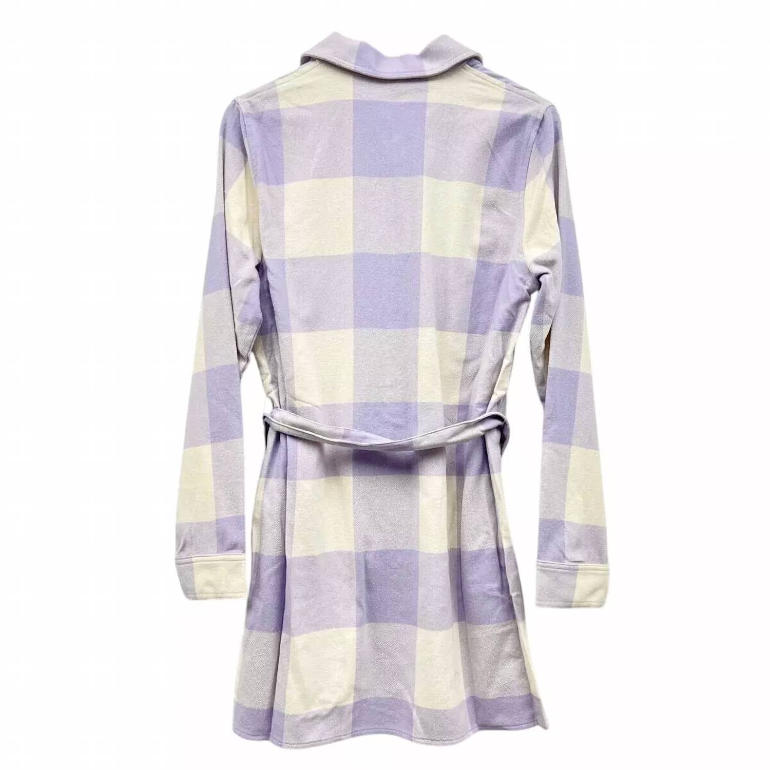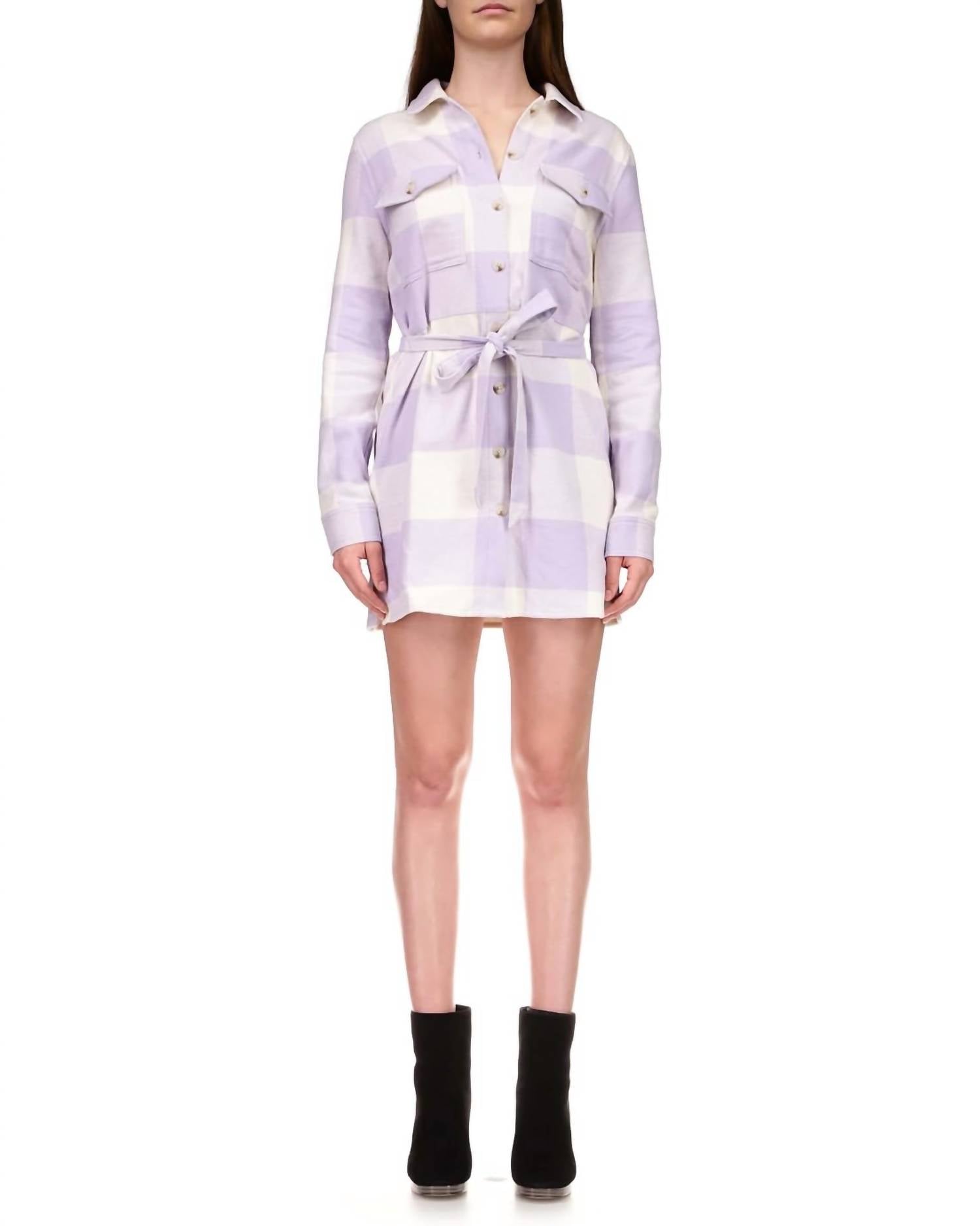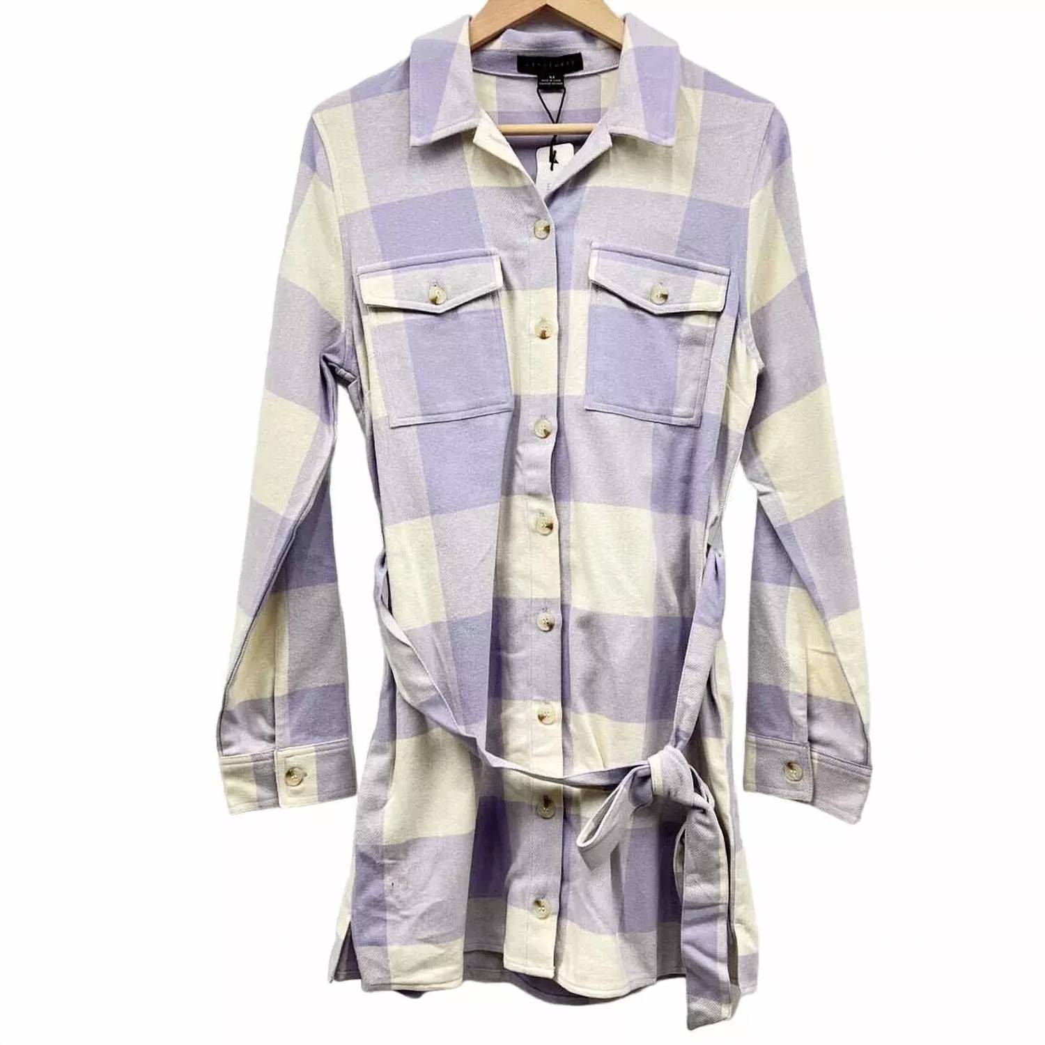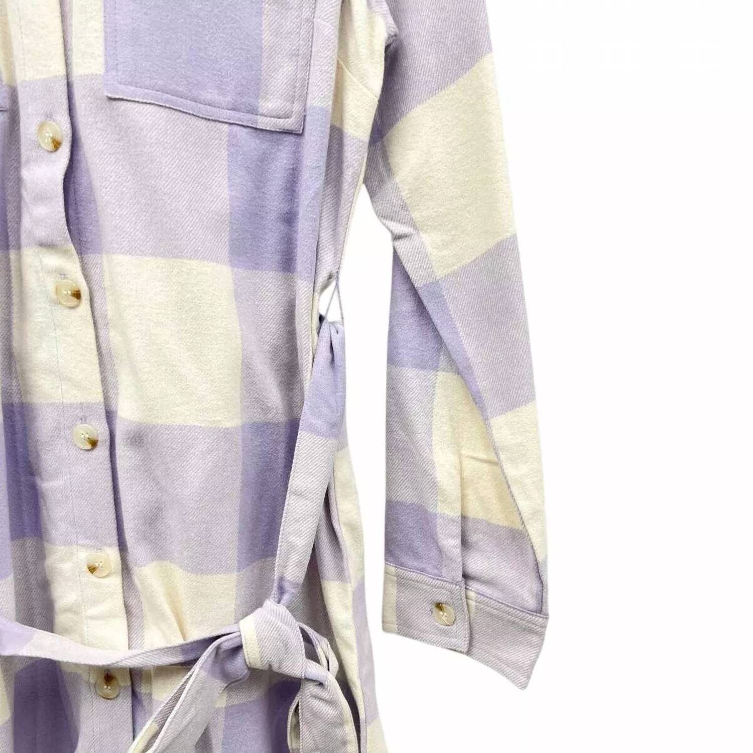 The perfect mini dress for those warmer months. Embrace everyday style with the Sanctuary™ Brushed Plaid Shirtdress in Wisteria Check, crafted from 100% cotton for comfort and breathability. This eye-catching plaid dress features a collared neckline, long sleeves with buttoned cuffs, and a practical button closure. Designed to flatter, it includes a belt tie closure for a customizable fit and convenient chest patch pockets. Measuring 33" in length, this mini dress is machine washable and can be tumble dried, ensuring easy care.