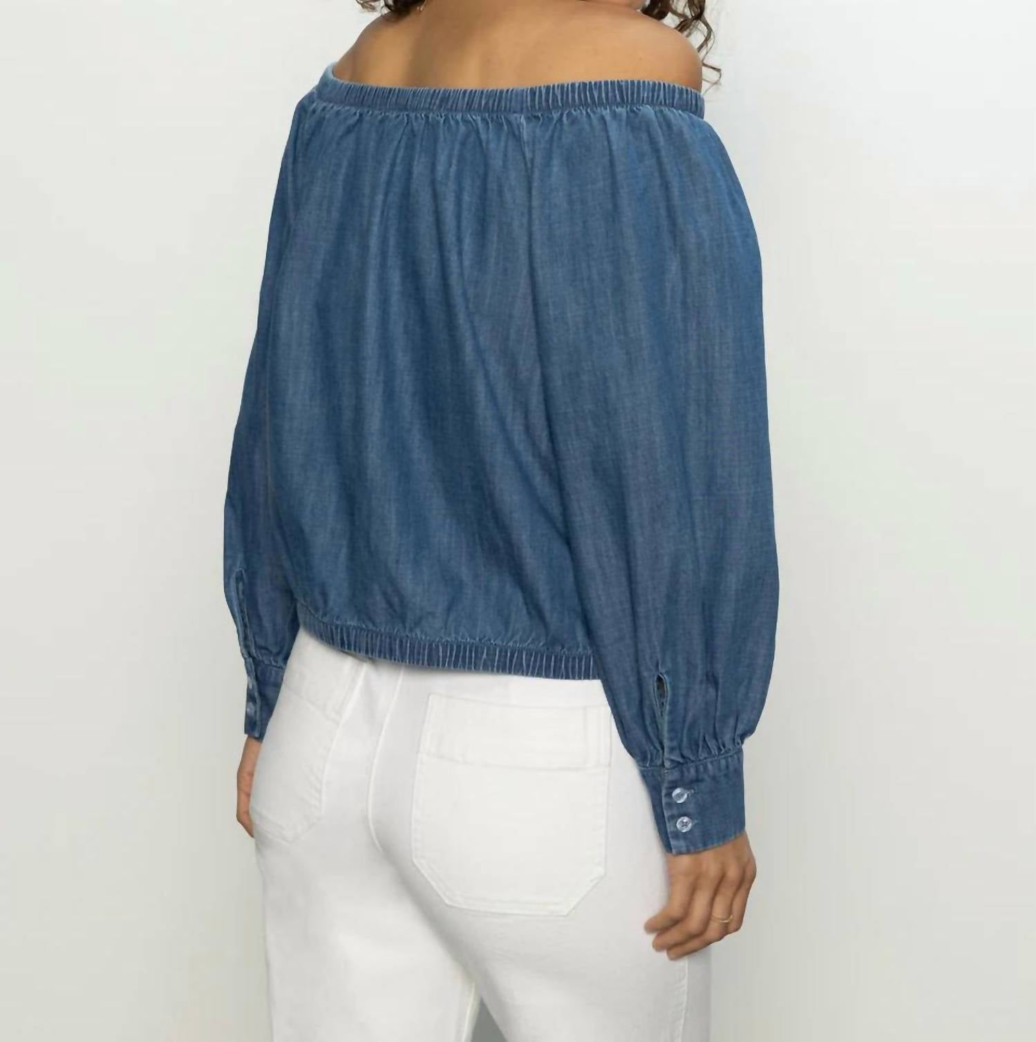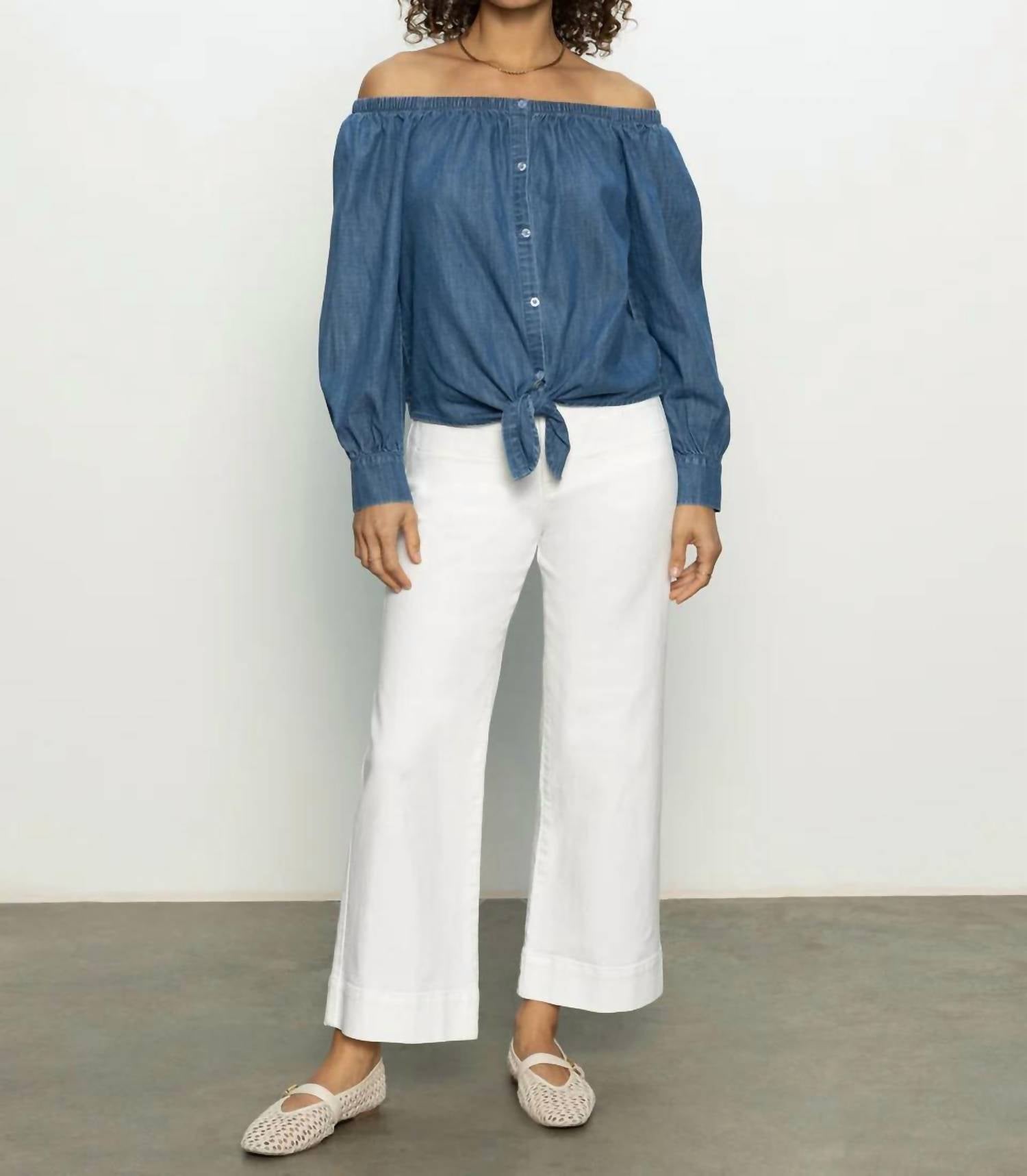 Pair this with your favorite jeans and slides for your next girls night out. Make a statement at any holiday party with the Sanctuary Ballet Tie Blouse in striking blue. This relaxed-fit, solid off-the-shoulder top features long sleeves and an elegant tie front detail. Designed with a button closure, it’s perfect for the spring season. Thoughtfully crafted without pockets, this piece is an excellent addition to your wardrobe essentials.