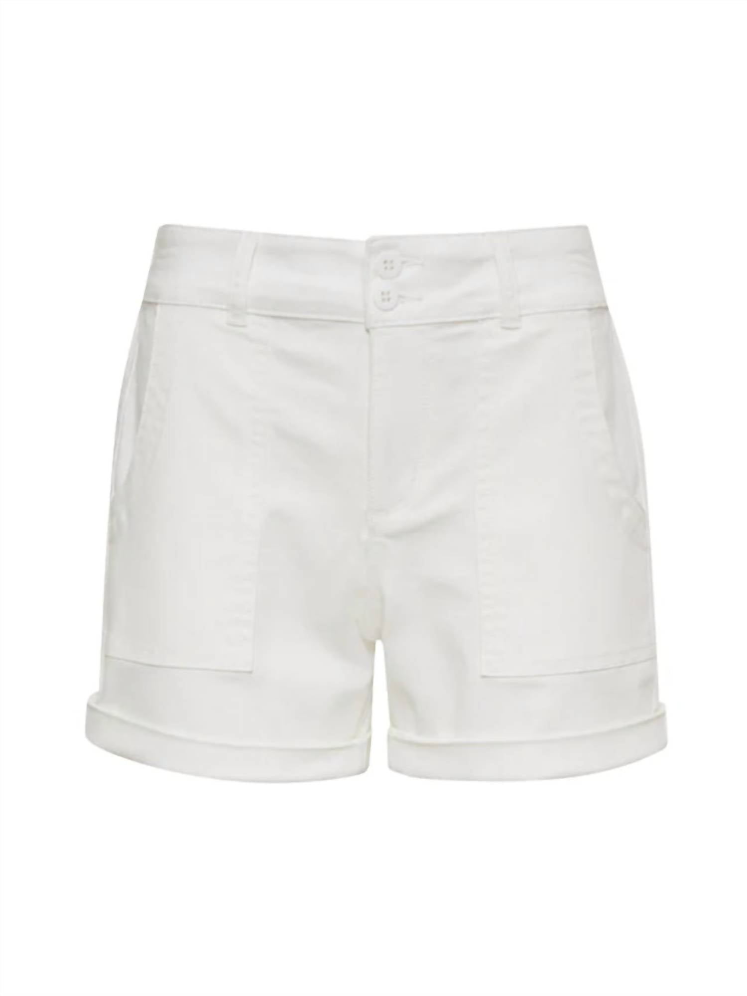 Jean shorts so versatile, you can literally wear them with anything. Discover the Renegade Cotton Short by Sanctuary, a must-have for your summer wardrobe. These bleached white shorts feature a high rise with an elastic back waistband, double button front, and zip fly closure. Crafted from a hybrid stretch twill composed of 63% cotton, 33% polyester, 2% rayon, and 2% spandex, they promise a relaxed fit with two front and two back pockets. Imported with an untacked rolled hem, inseam of 4.5 inches, and ideal for vacation styling, these shorts are machine washable and can be tumble dried on low.
