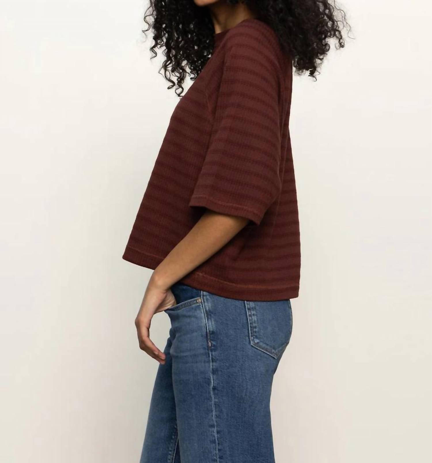 A versatile blouse that works from desk to dinner! Elevate your spring style with the Boxy Raglan Tee by Sanctuary in chicory stripe, perfect for Easter or engagement gatherings. This women's blouse features elbow sleeves and a classic crewneck, crafted primarily from polyester for a comfortable fit. Composition includes 65% polyester, 18% cotton, 14% rayon, and 3% spandex. Closure: Pull on. Care: Machine wash and lay flat to dry.