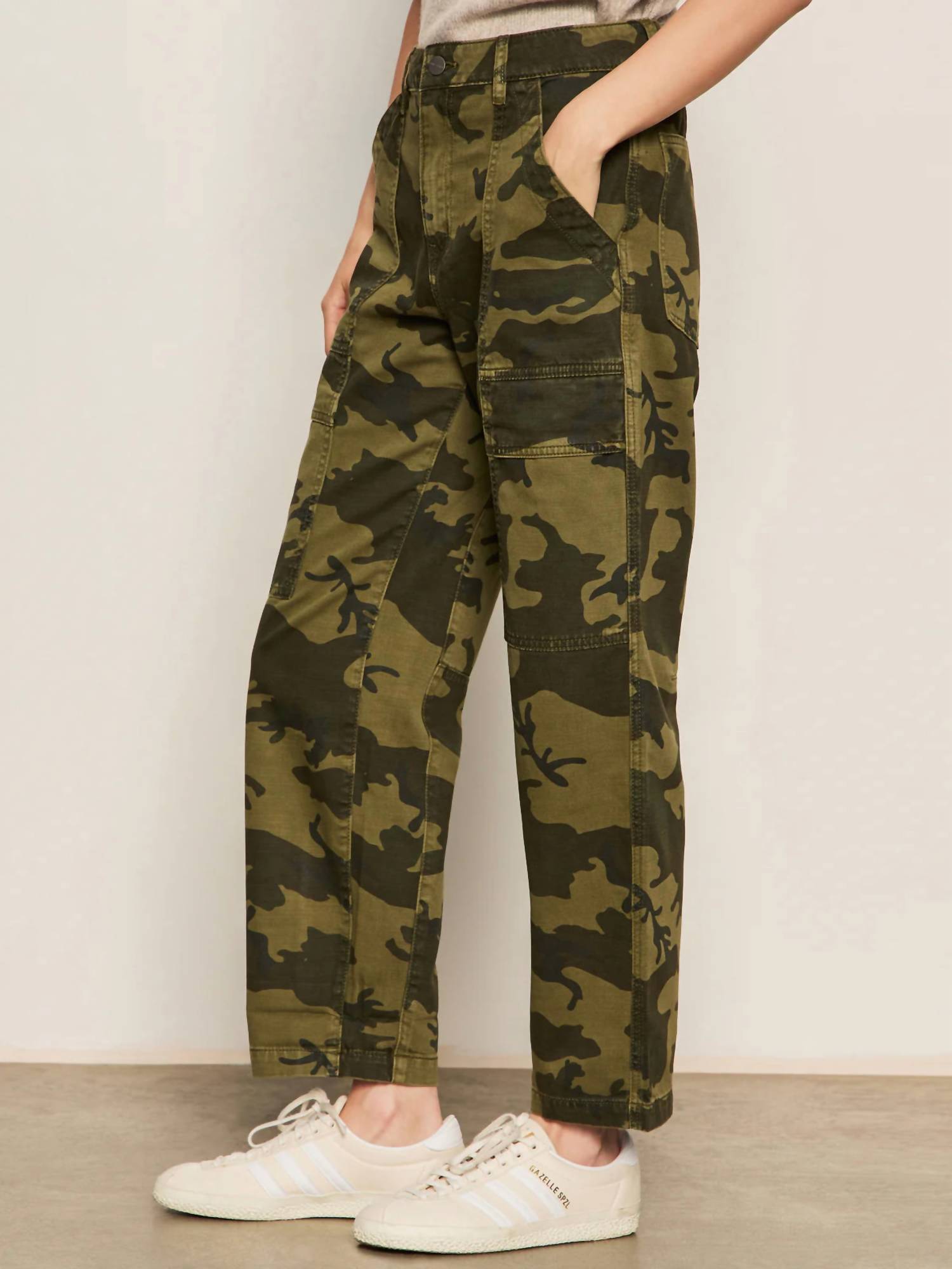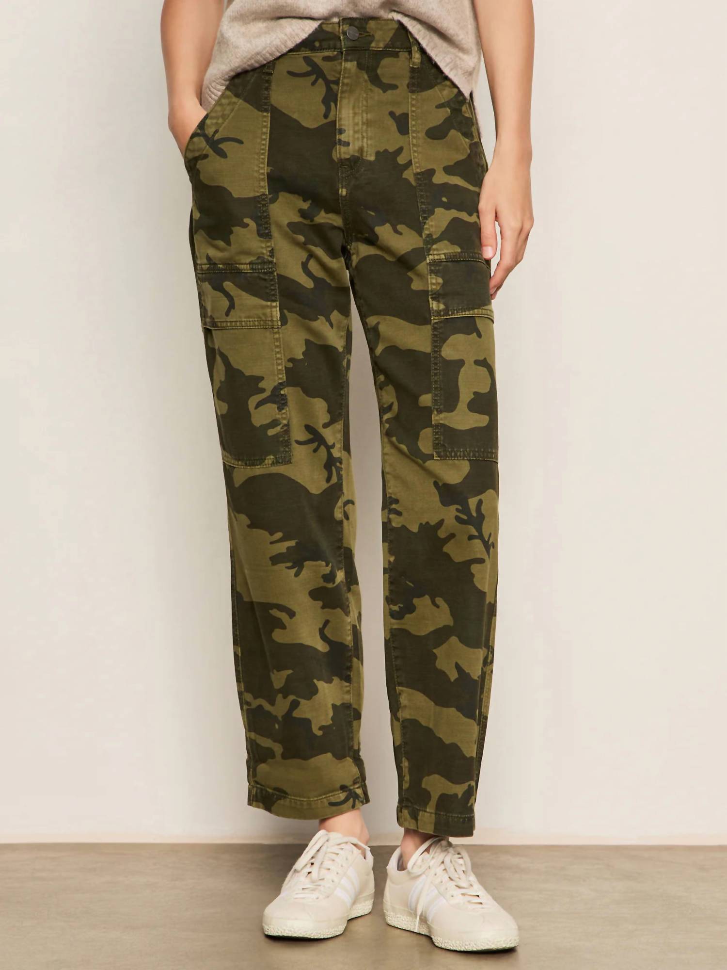 This straightleg pant is both stylish and comfortable. Did we mention the fit is perfection? Discover the Sanctuary Boyfriend Utility Pant, a chic blend of style and functionality in Rambler Camo perfect for any casual or workwear wardrobe. Made from 100% cotton with a printed woven finish, these pants boast a high-rise fit and relaxed barrel leg for ultimate comfort. Featuring a button front and zip fly closure, and equipped with six pockets, including two front, two side flap cargo, and two back pockets. With an inseam of 29 inches, a front rise of 12 inches, and a leg opening of 17 inches, these imported pants are easy to care for with machine wash cold and low tumble dry instructions.
