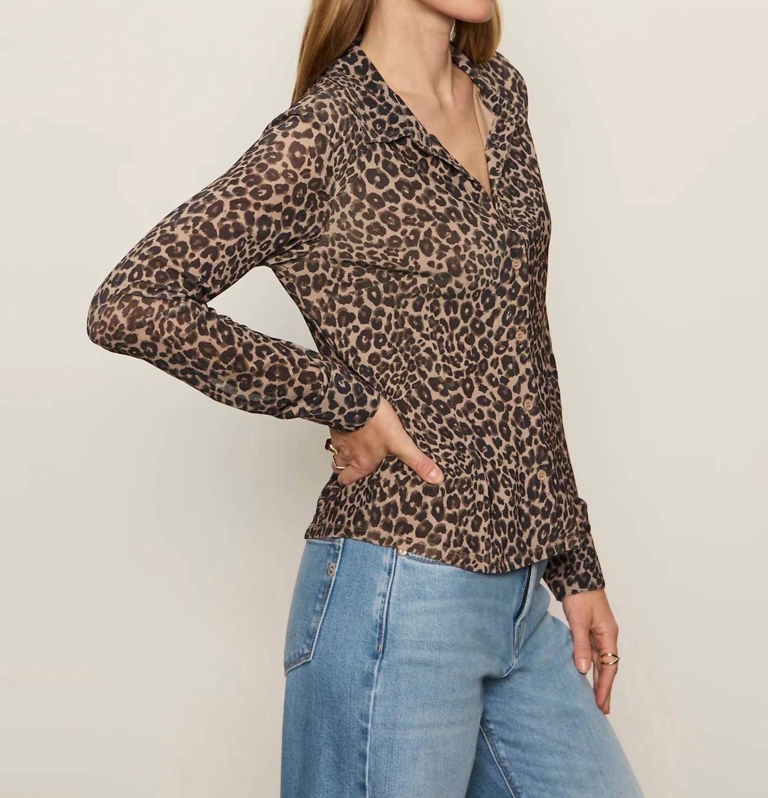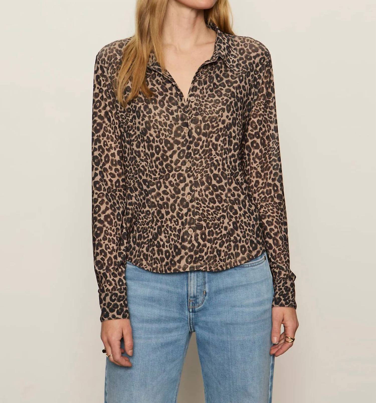 Perfectly tailored and soft to the touch. Elevate your style with the Dreamer's Top by Sanctuary, showcasing a fierce French Kitty leopard print. Crafted from durable polyester, this long sleeve mesh top features a sophisticated spread collar and a button front for a fitted silhouette. Closure: Button closure. Care instructions: Hand wash. Embrace the maximalist trend this fall with this statement piece, perfect for any vacation occasion.