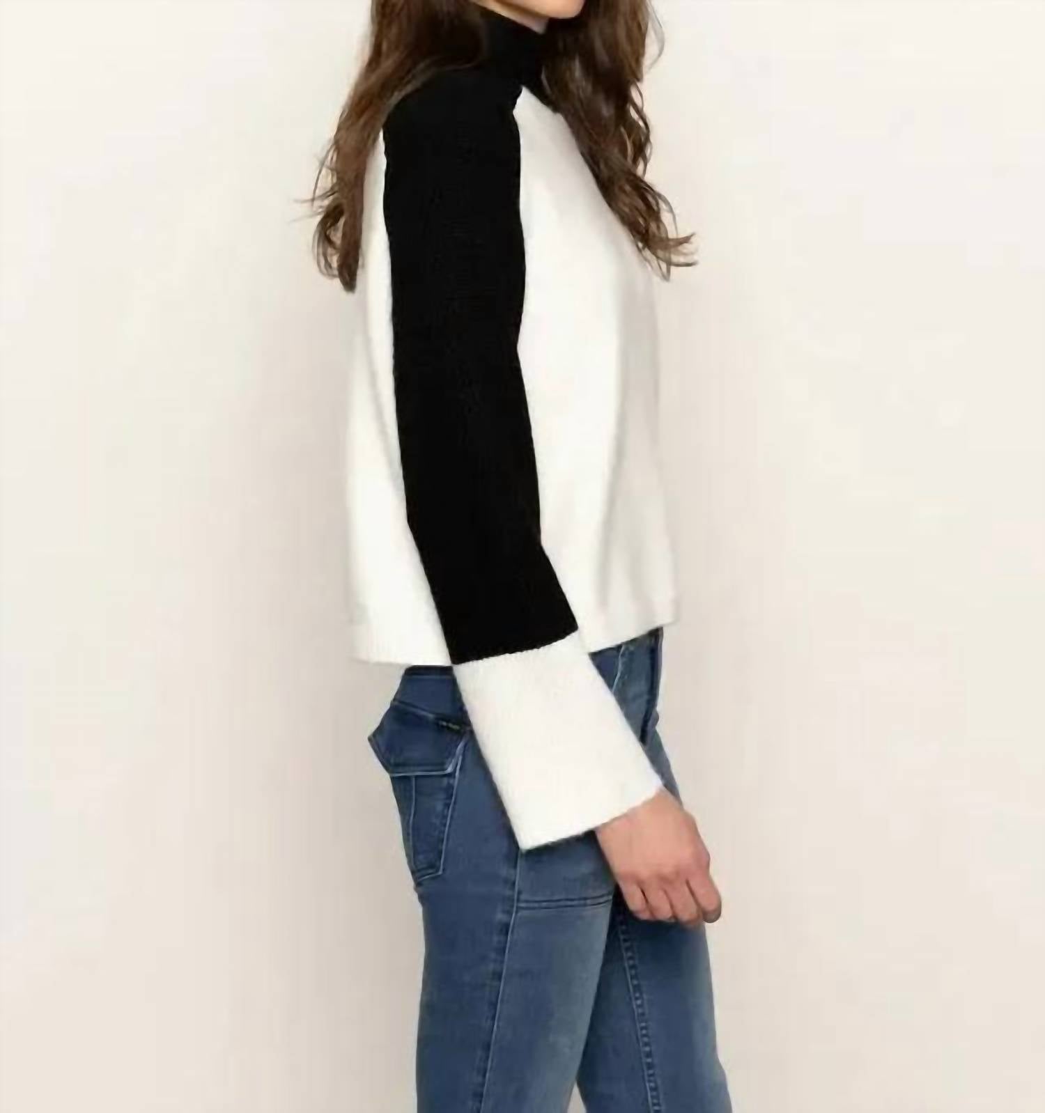Layer under your favorite sweater or wear tucked into jeans for a perfectly polished winter look. Introducing the Sanctuary Downtown Mock Neck Sweater, a chic addition to your fall wardrobe in a striking Black and Chalk combination. This sweater features long sleeves and a stylish mock neck, designed for a modern and preppy look. Made from a cozy blend of polyester, nylon, and wool, it promises warmth and breathability. Closure Type: Pull On. Care: Machine wash. Ideal for vacation occasions, this patterned piece offers both comfort and contemporary flair.