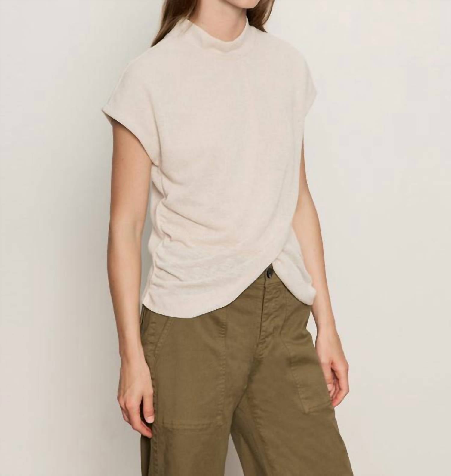 Pair this with your favorite jeans and slides for your next girls night out. Introducing the Draped Sleeveless Mock Neck Top by Sanctuary, a minimalist essential in a solid Mother Of Pearl hue. Perfect for a spring refresh, this blouse features short sleeves and a chic mock neck. Closure: Pull On. Care: Dry clean only.