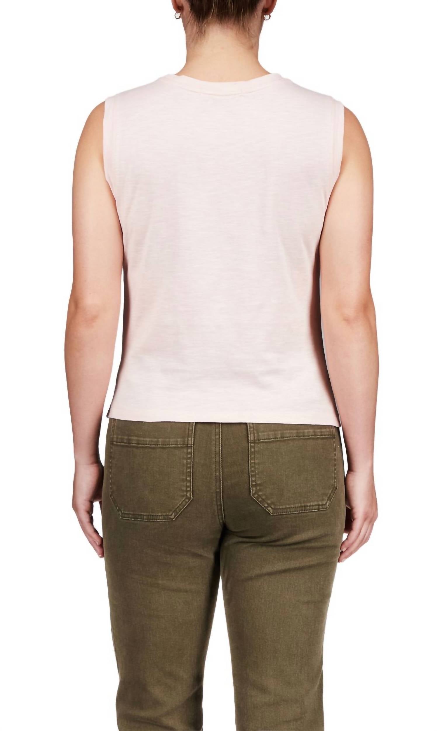 Fit, fabric and functionality. This tank top checks all the boxes. Details: Pull-On Sleeveless Tee Draped Detail At Front Crew Neck Relaxed Fit 51% Cotton, 49% Rayon
