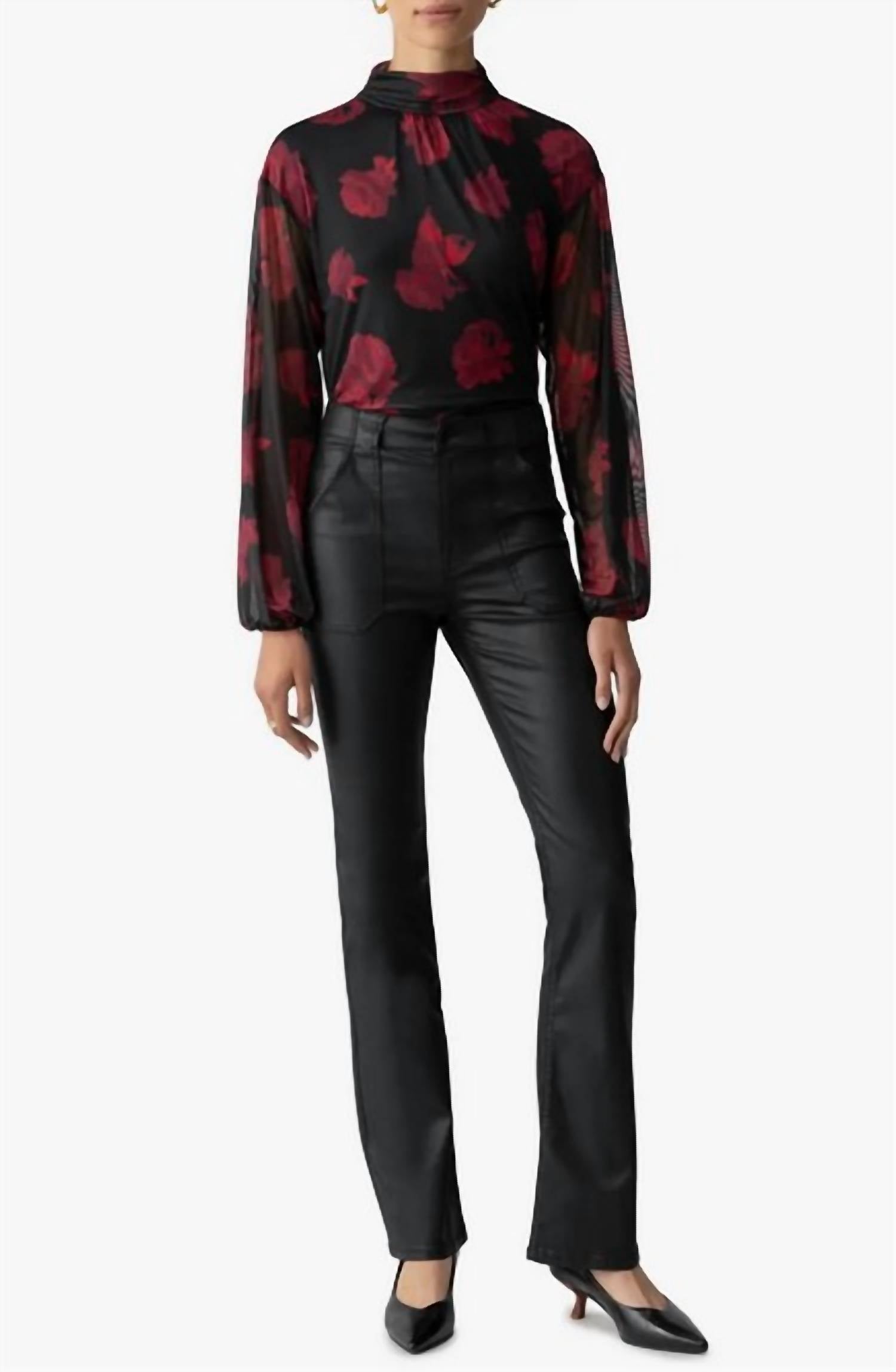 A versatile blouse that works from desk to dinner! Indulge in timeless elegance with the Floral Print Mesh Top by Sanctuary, perfect for any special occasion this season. This top features long blouson sleeves with elastic cuffs and a chic mock neck, offering a sophisticated look in Moody Rose with an allover floral pattern. Expertly crafted with a shell composed of 94% recycled polyester and 6% spandex, and a 100% rayon lining. Closure: Pull on style. Care: Machine washable for your convenience, embodying the essence of quiet luxury.
