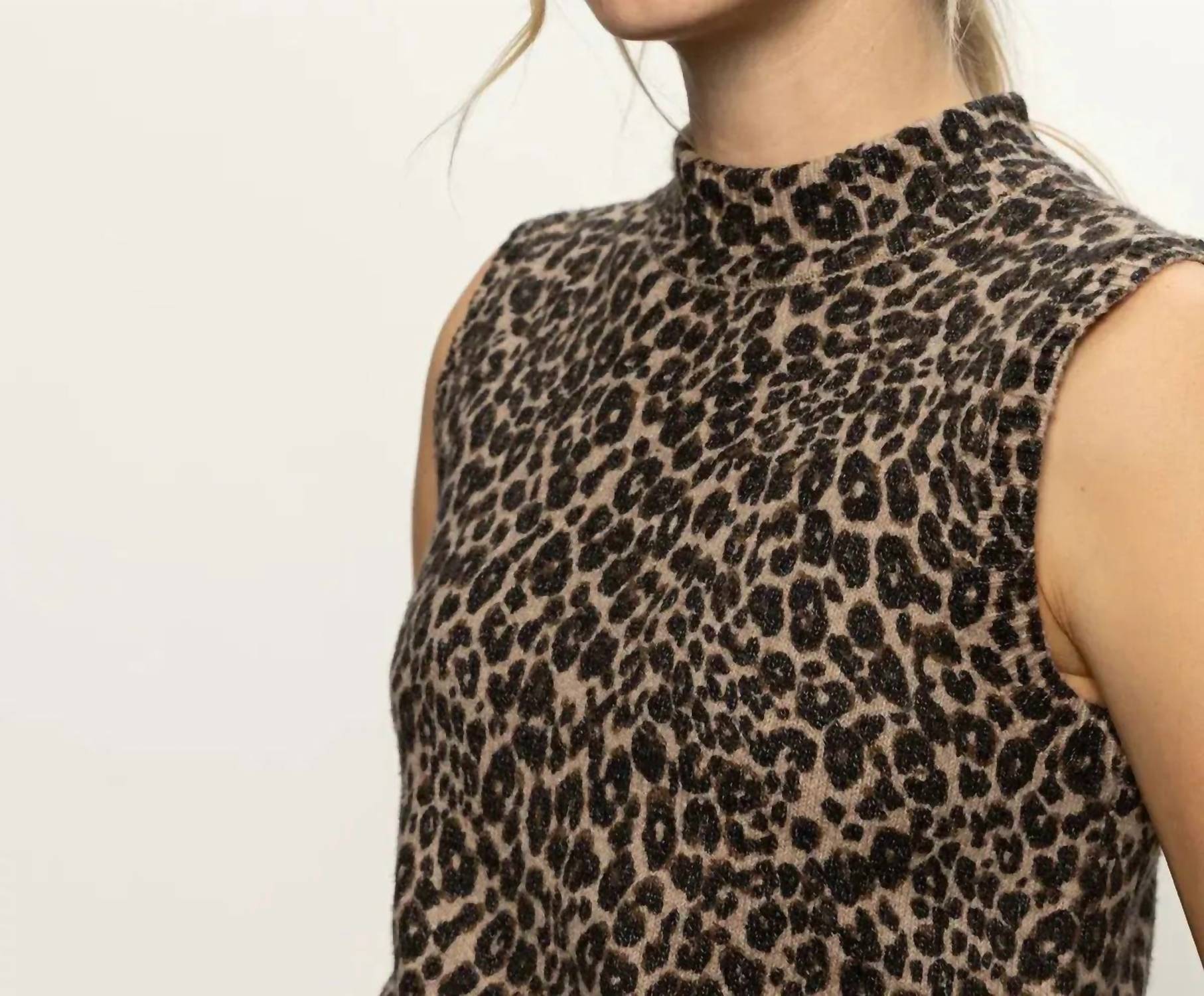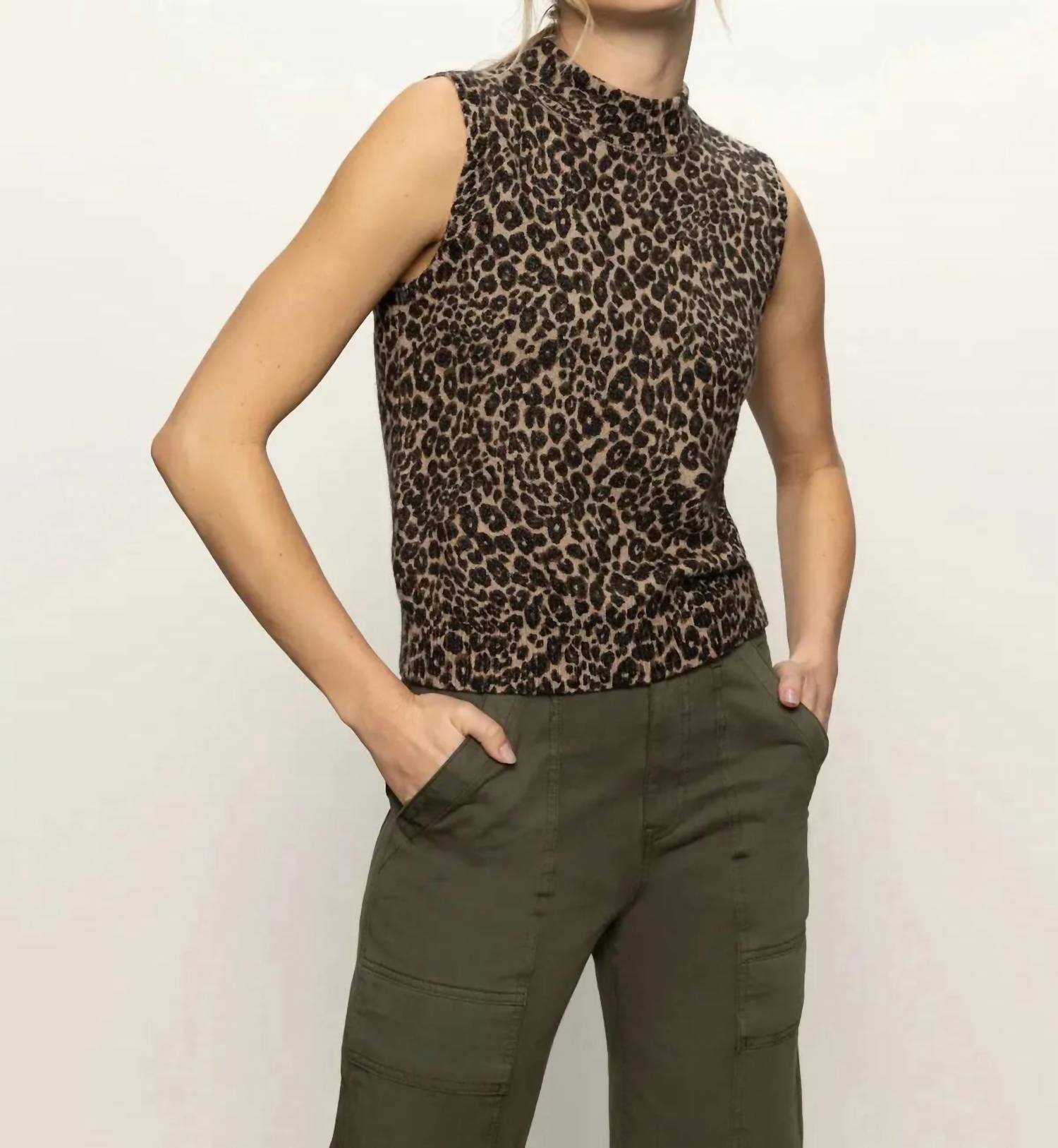 Fit, fabric and functionality. This tank top checks all the boxes. Experience bold style and cozy comfort with the Sanctuary Fuzzy Shell Top in French Kitty. This sleeveless sweater is crafted from a soft cotton blend featuring a chic cheetah print, ideal for the maximalist trend. Designed with a flattering mock neck and ribbed hem, it's perfect for versatile fall dressing, whether layered or worn solo during a Thanksgiving getaway. Closure is effortless with a pull-on design, and for care, simply hand wash to maintain its cozy feel.