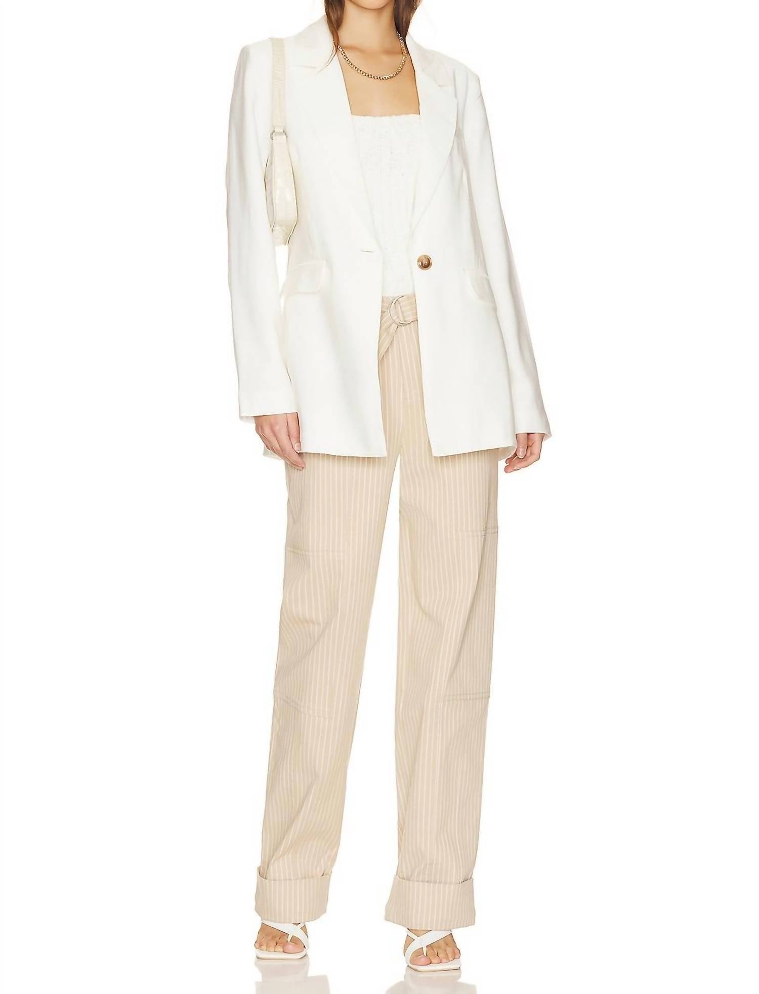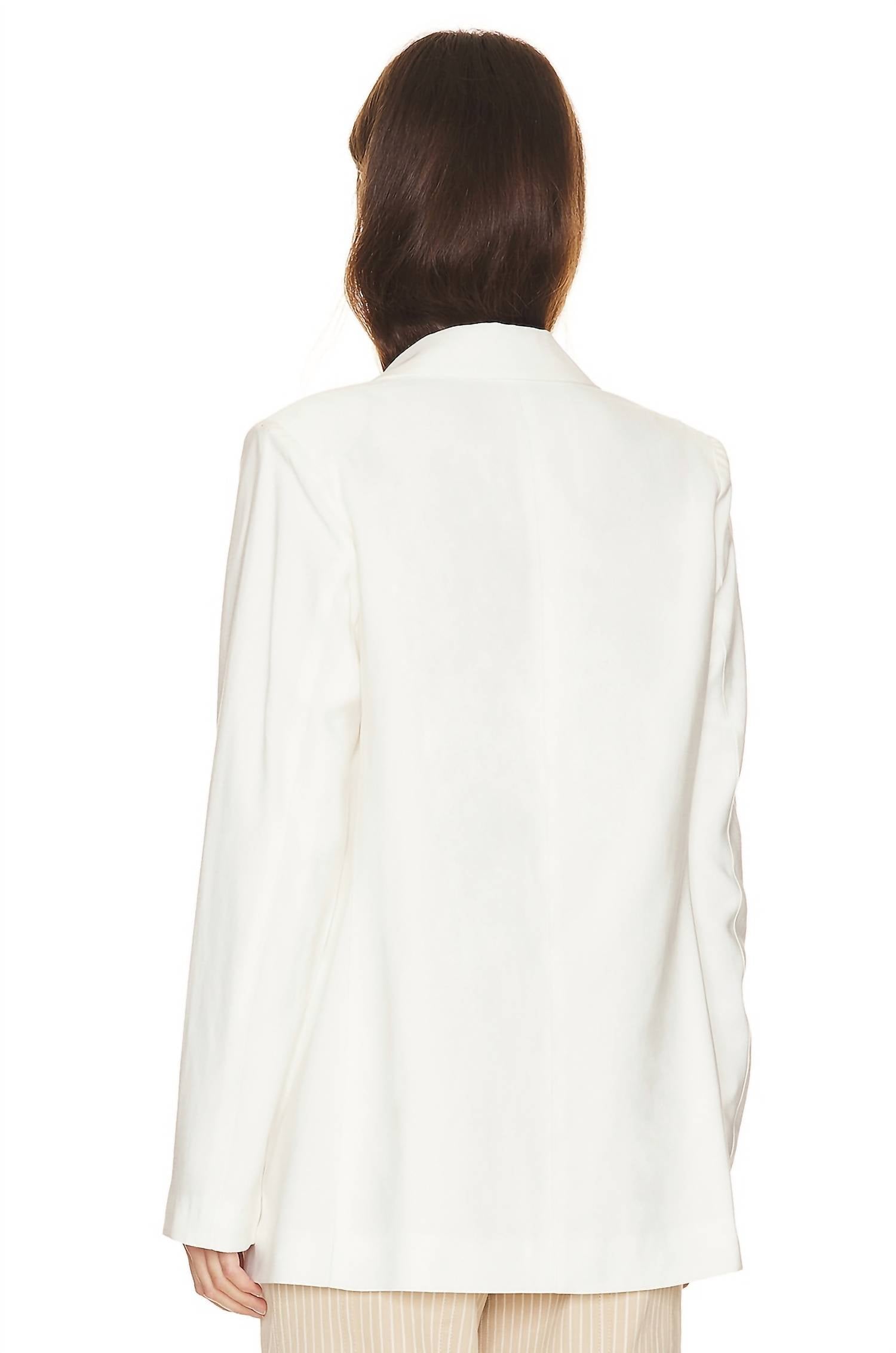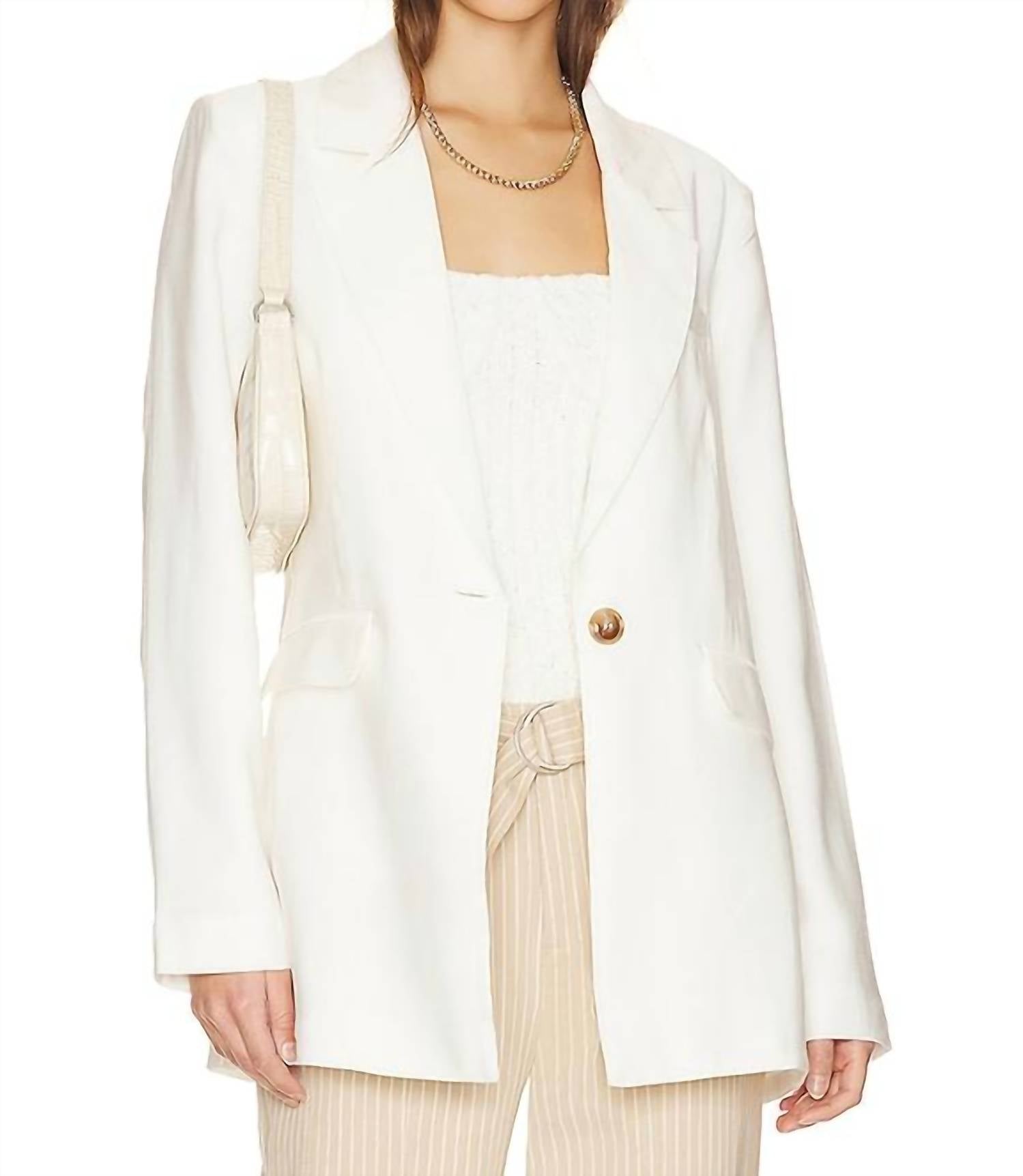 An elevated version of your favorite classic blazer. Elevate your workwear with the Kora Blazer by Sanctuary, an elegant piece in the shade of Powdered Sugar. This long sleeve blazer is crafted from 92% rayon and 8% polyester with a 100% polyester lining, offering a sophisticated fit and feel. Designed in China, it features a single-button front closure, padded shoulders, and functional front flap pockets for added style and utility. Midweight crepe fabric enhances its structure, and it is machine washable for easy care.