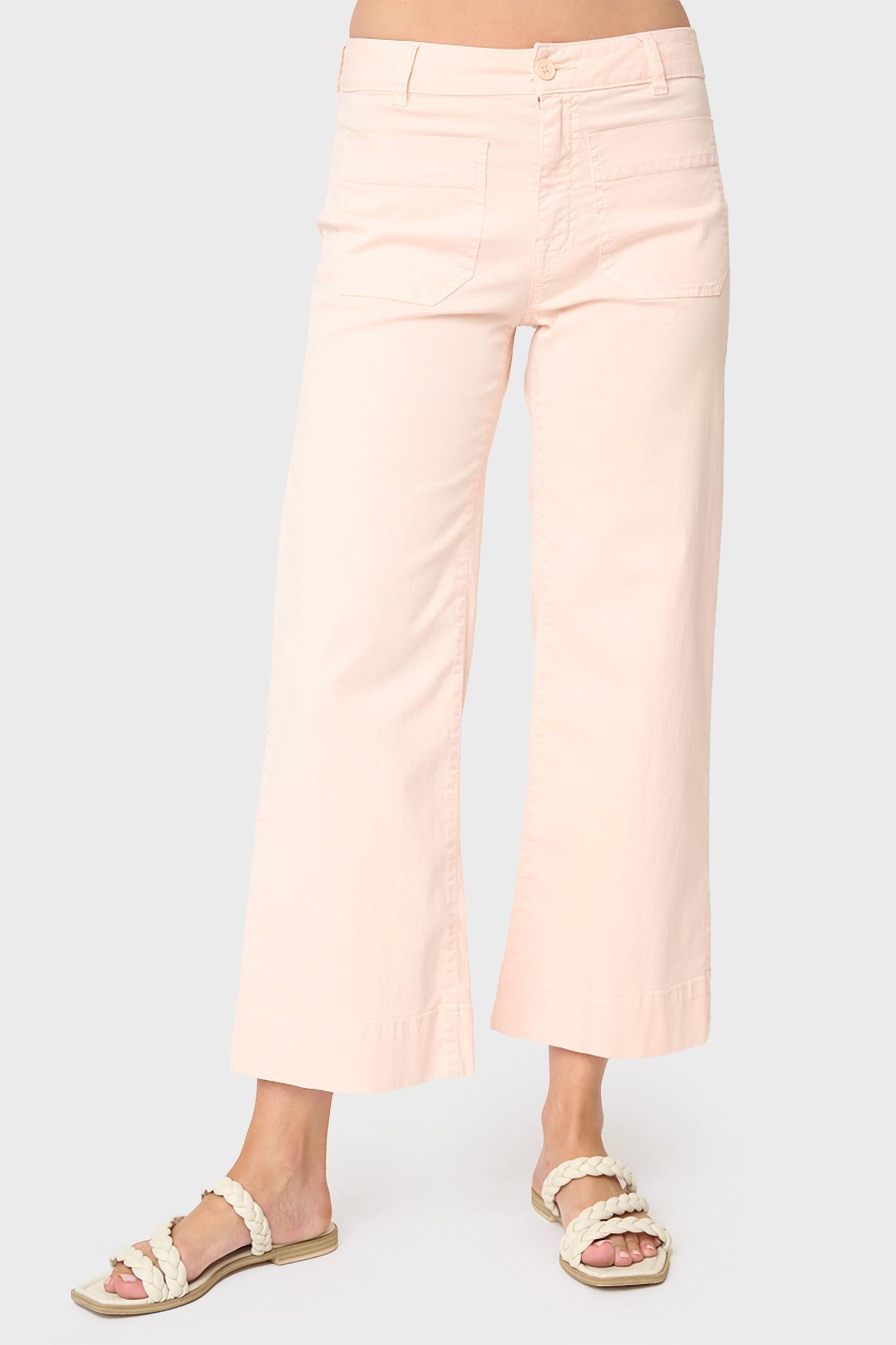 Enhance your wardrobe with this trendy cropped number, designed to blend style and practicality. The comfortable fit allows for easy all-day wear. The perfect length to pair with your favorite mules. Elevate your spring wardrobe with the Sanctuary Marine Crop Pant in elegant Rose Smoke, perfect for holiday parties and beyond. These wide-leg, ankle-length pants feature a relaxed fit and a zip closure for effortless styling. Crafted from a superior 98% cotton and 2% spandex blend, they promise both comfort and durability while offering functional front and back pockets. Care for these pants is a breeze, simply machine wash cold inside out and dry low. Sabrina is 5'7" and wearing a XXS, with an inseam of 27".