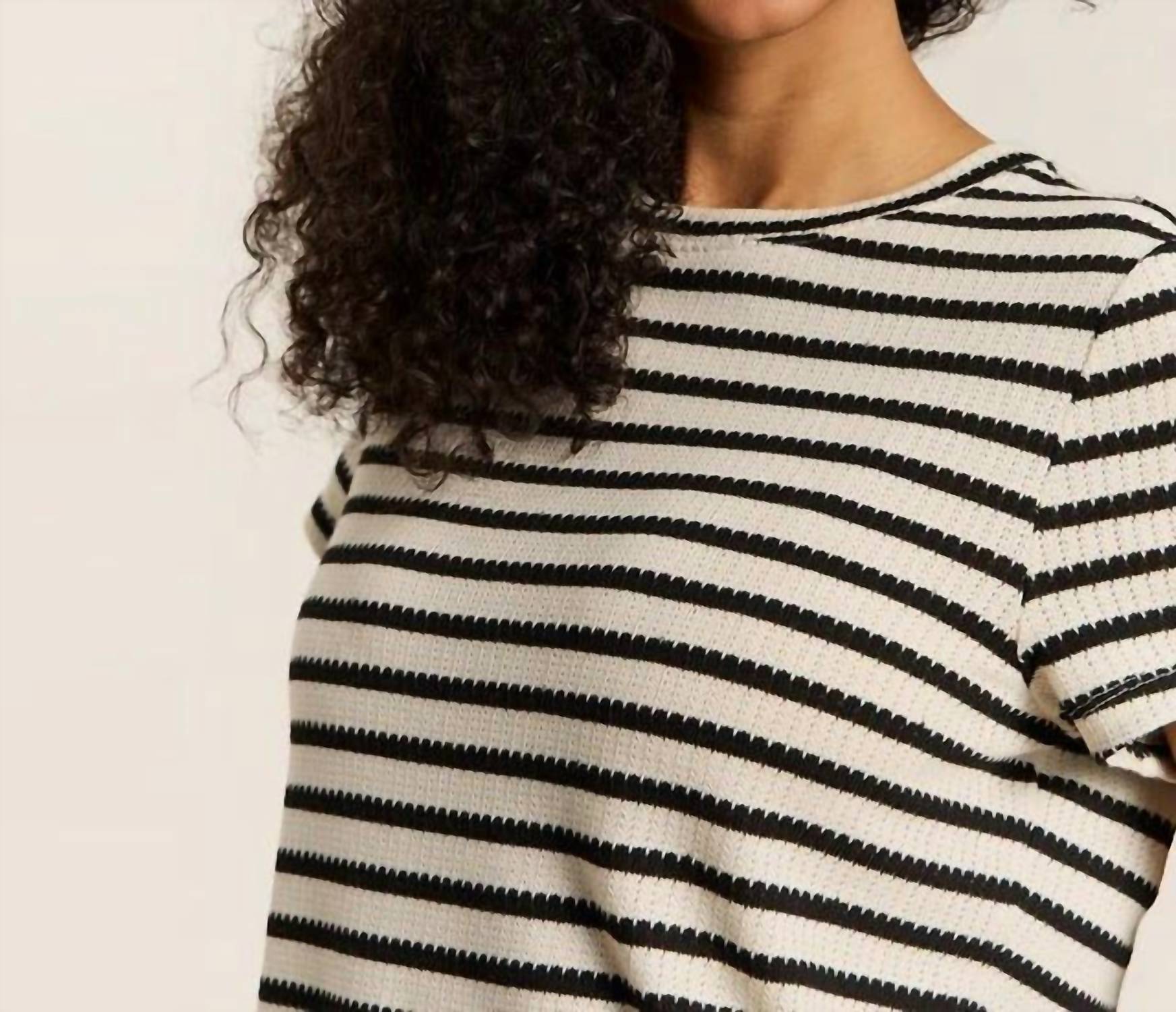 Look no further, you just found your perfect tee! Experience effortless charm with the Perfect Textured Tee by Sanctuary, a must-have for your summer wardrobe. This short-sleeved shirt features a dainty textured knit in Macrame Black Stripe, complemented by a classic crewneck. Crafted from a blend of 65% Polyester, 18% Cotton, 14% Rayon, and 3% Spandex, it offers a relaxed fit with an easy pull-on style for ultimate comfort. Care for this charming piece with machine wash instructions.