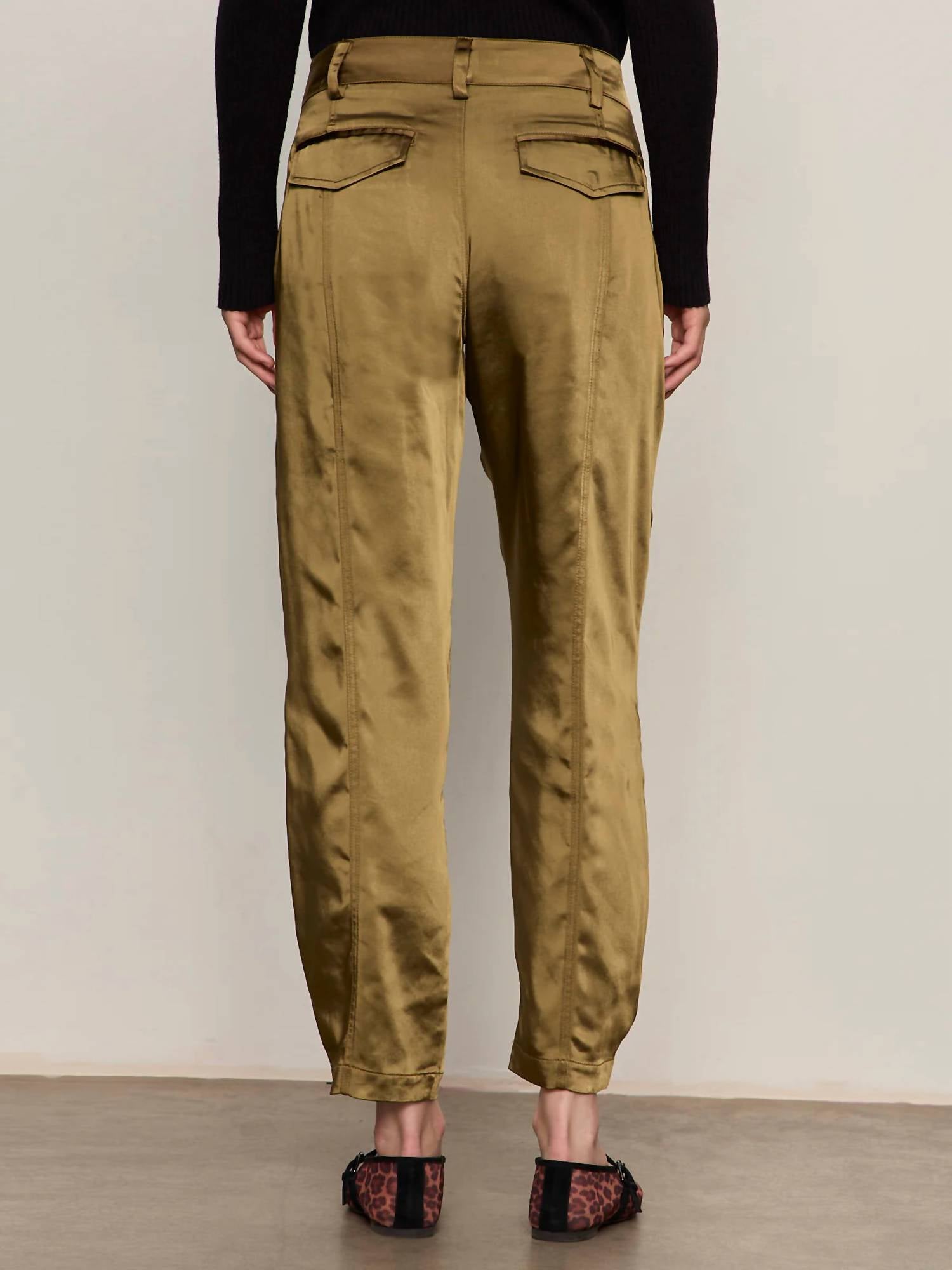 A straightleg pant that workes season after season. Dress these up with your favorite blouse or keep it casual with your go-to tee. Elevate your style with the Sahara Satin Tapered Pant by Sanctuary in the chic Dirty Martini hue. These women's pants feature a flattering tapered fit with a skinny leg style, perfect for a versatile streetwear look. Made from 100% polyester, they offer comfort and elegance, complete with functional pockets and a secure zip closure. Care for these stylish pants is simple: machine wash cold and line dry. Model wears a size 27 (5'9", waist 31", front rise 10.5", inseam 28.5", leg opening 14").