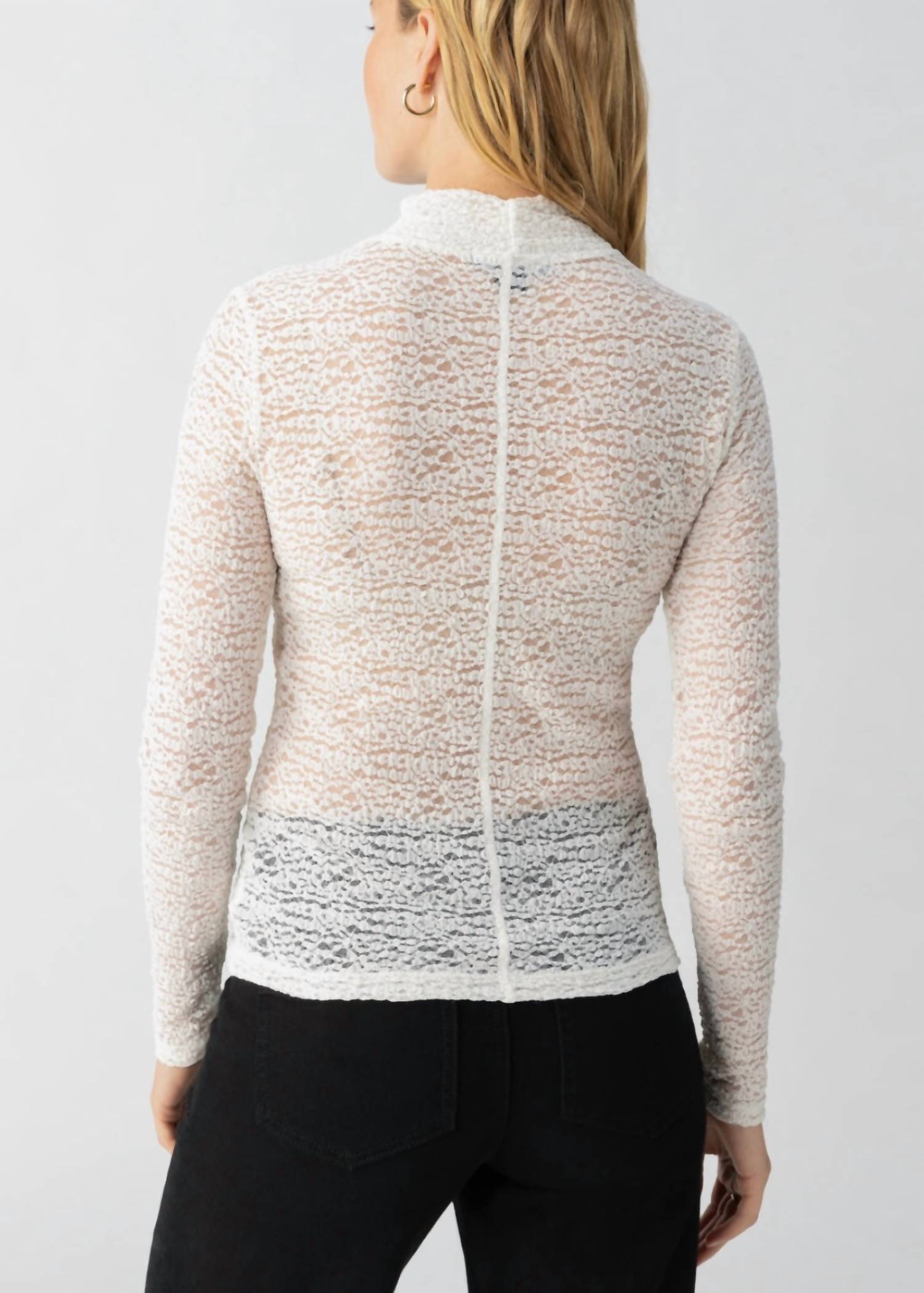 Great fit, cute design, soft fabric. You'll love everything about this long sleeve tee. Discover the Textured Mock Neck Tee by Sanctuary, a chic blend of elegance and modern edge. This women's tee showcases long sleeves with delicate lace, adding a touch of femininity to the solid Chalk design. At its core, the piece is crafted from a nylon blend with 93% Nylon and 7% Spandex for a comfortable stretch, finished in a fitted silhouette. Closure is pull-on, with care instructions advising hand wash and laying flat to dry. Measurements: Front sleeve 23 1/2”, bust 32”, sleeve 31”. Model wears size Small (5'8" height).