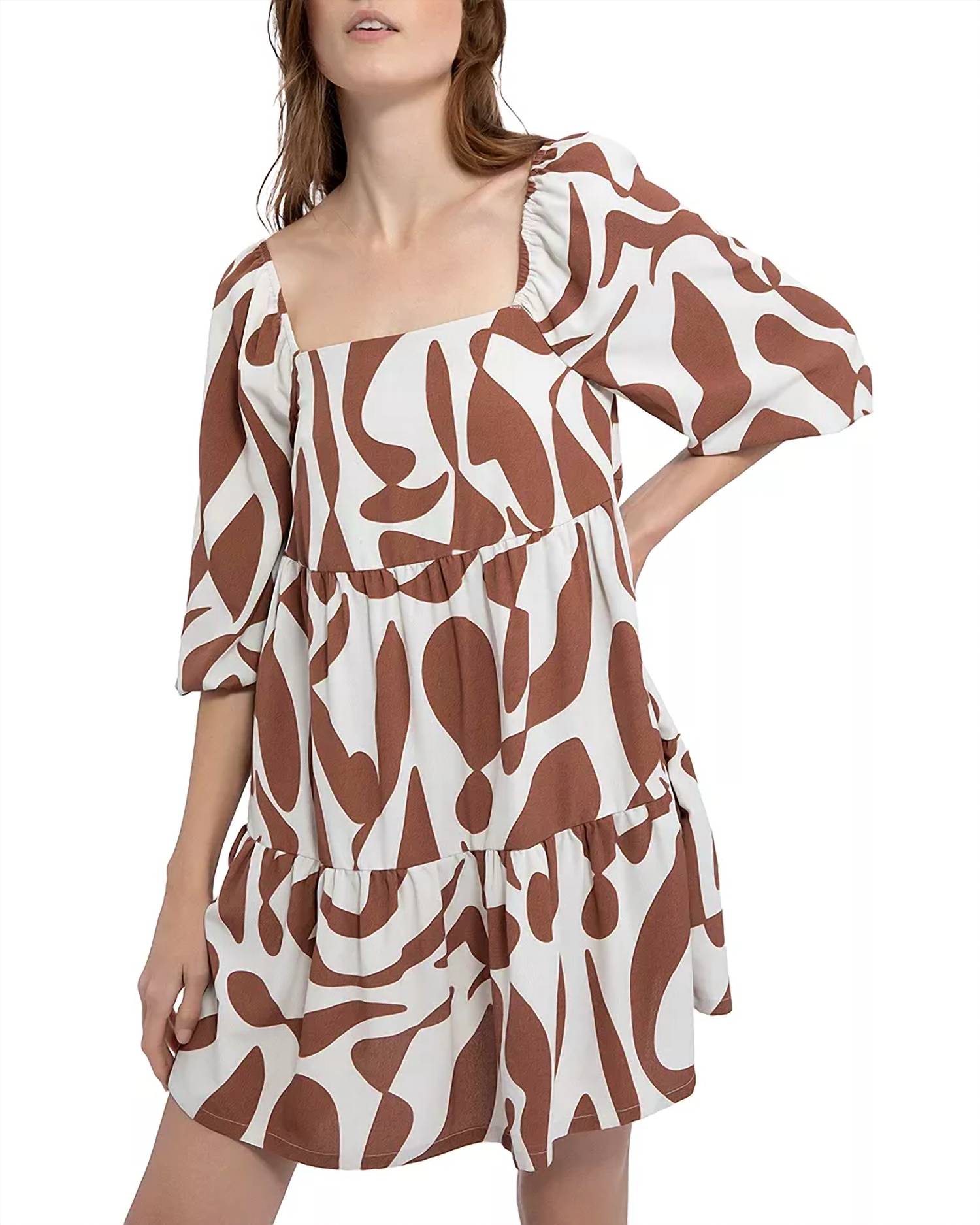 The perfect mini dress for those warmer months. The Weekender Babydoll Mini Dress by Sanctuary is a perfect blend of relaxed style and chic elegance in Lion River print. This mini dress features three-quarter length volume sleeves and a square neck, designed in a babydoll silhouette for a trendy boho chic appearance. Composition: 100% recycled polyester with a 100% polyester lining, crafted to be approximately 33.5" long from back of neck to hem in a size small. Care: Machine wash. Model is wearing a size small (5'10" height, 33.5" bust, 23.5" waist, 34.5" hips).