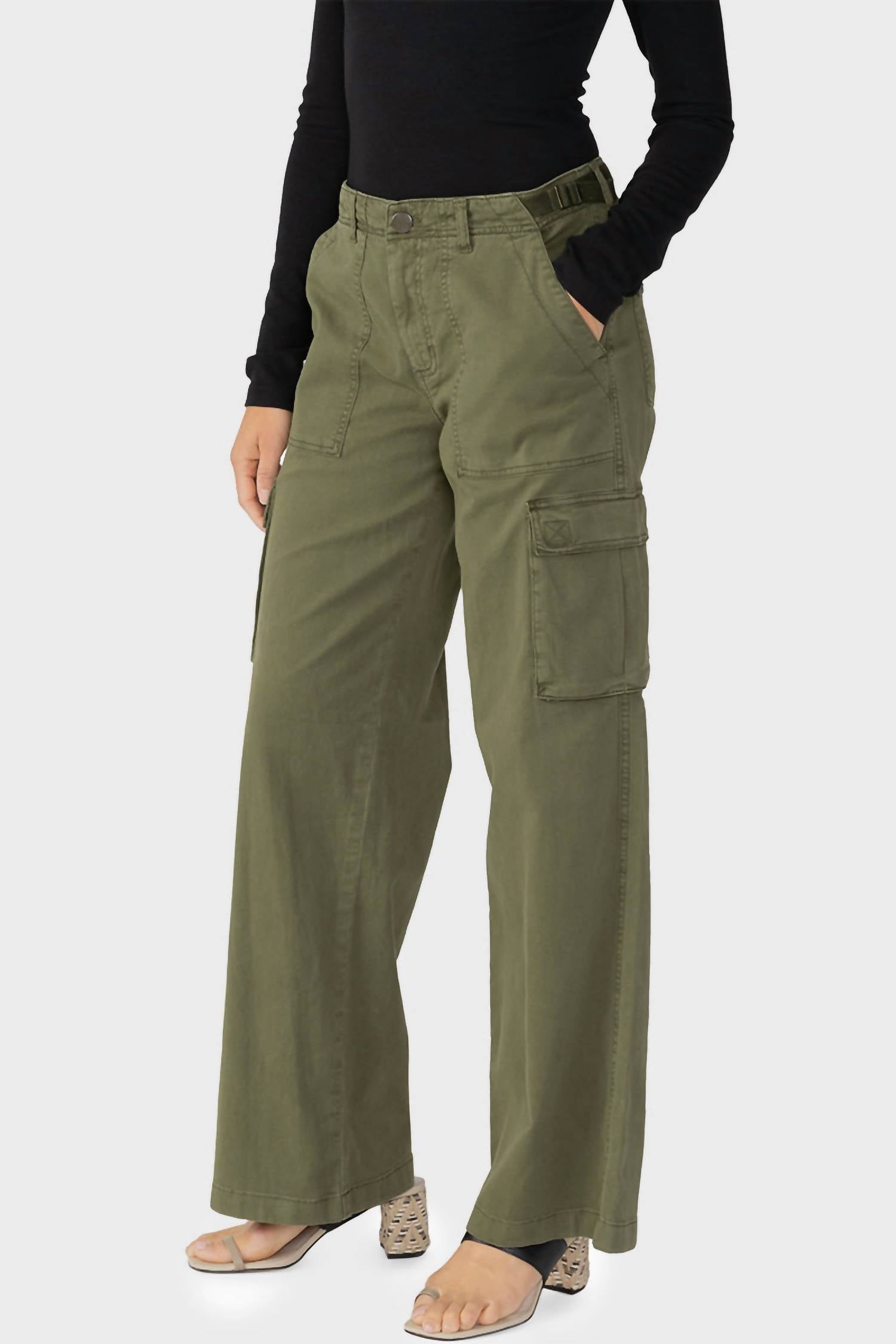 The perfect pant for running around town and looking cool while doing it. Meet the Women's Reissue Cargo by Sanctuary, a chic addition to your wardrobe in a stylish Mossy Green hue. Designed with a versatile zip closure and functional cargo pockets, these pants provide both comfort and practicality. Crafted from a soft cotton blend (97% Cotton, 3% Spandex), they offer a relaxed fit with a 32.5" length for size small. Care for these cargo pants is easy with a delicate wash cycle and laying them flat to dry. Model is 5'9" and wears a size small.