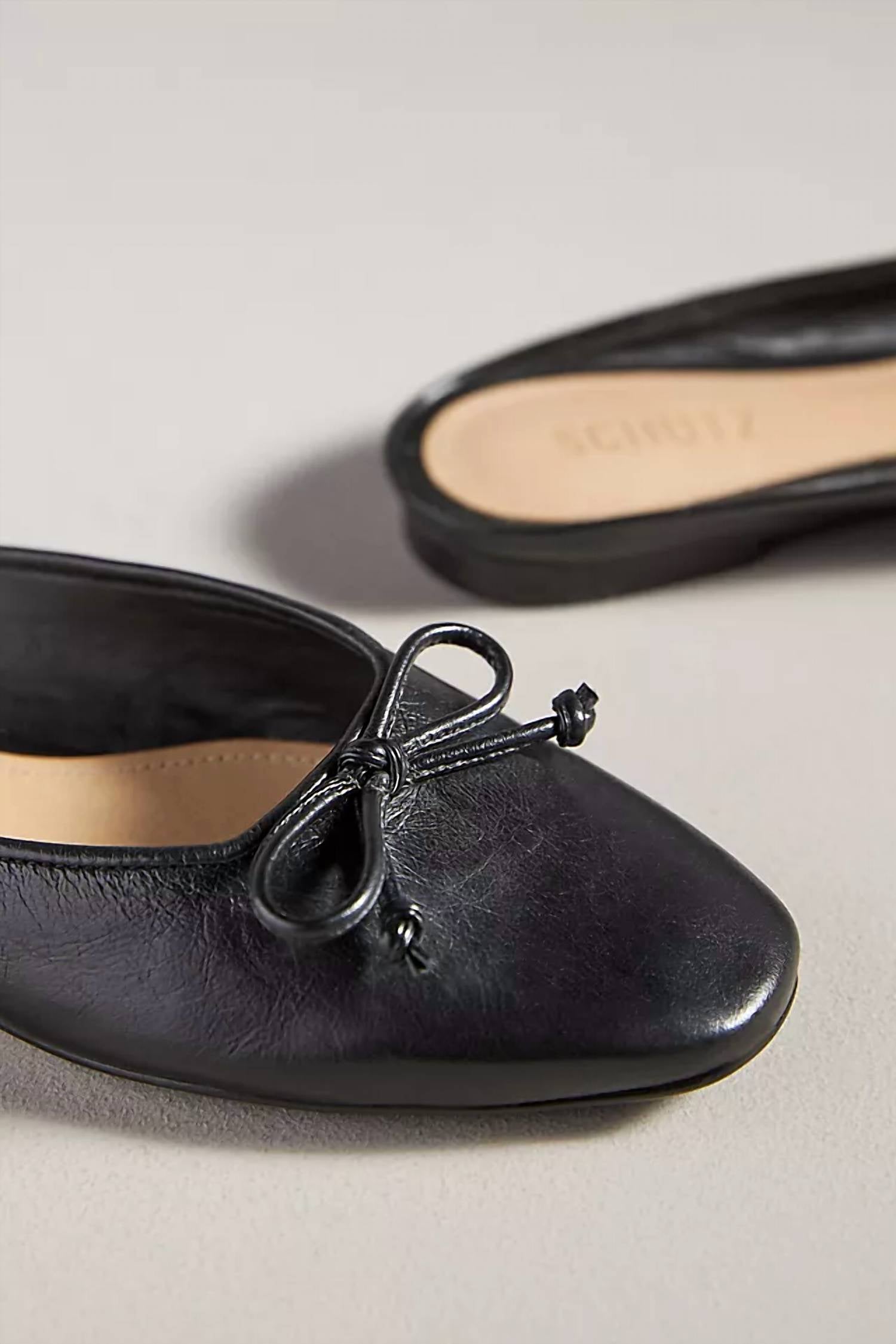 Slip them on and go! Schutz presents the Women's Lolita Mules, an elegant black flat heel shoe inspired by ballet flats, ideal for both business or casual occasions. Crafted from high-quality leather, these minimalist mules are perfect for spring events and are especially stylish for Thanksgiving gatherings. Elevate your holiday ensembles with these chic and versatile flats, designed for the modern woman's wardrobe. This refined piece showcases Schutz's attention to detail and commitment to quality craftsmanship.