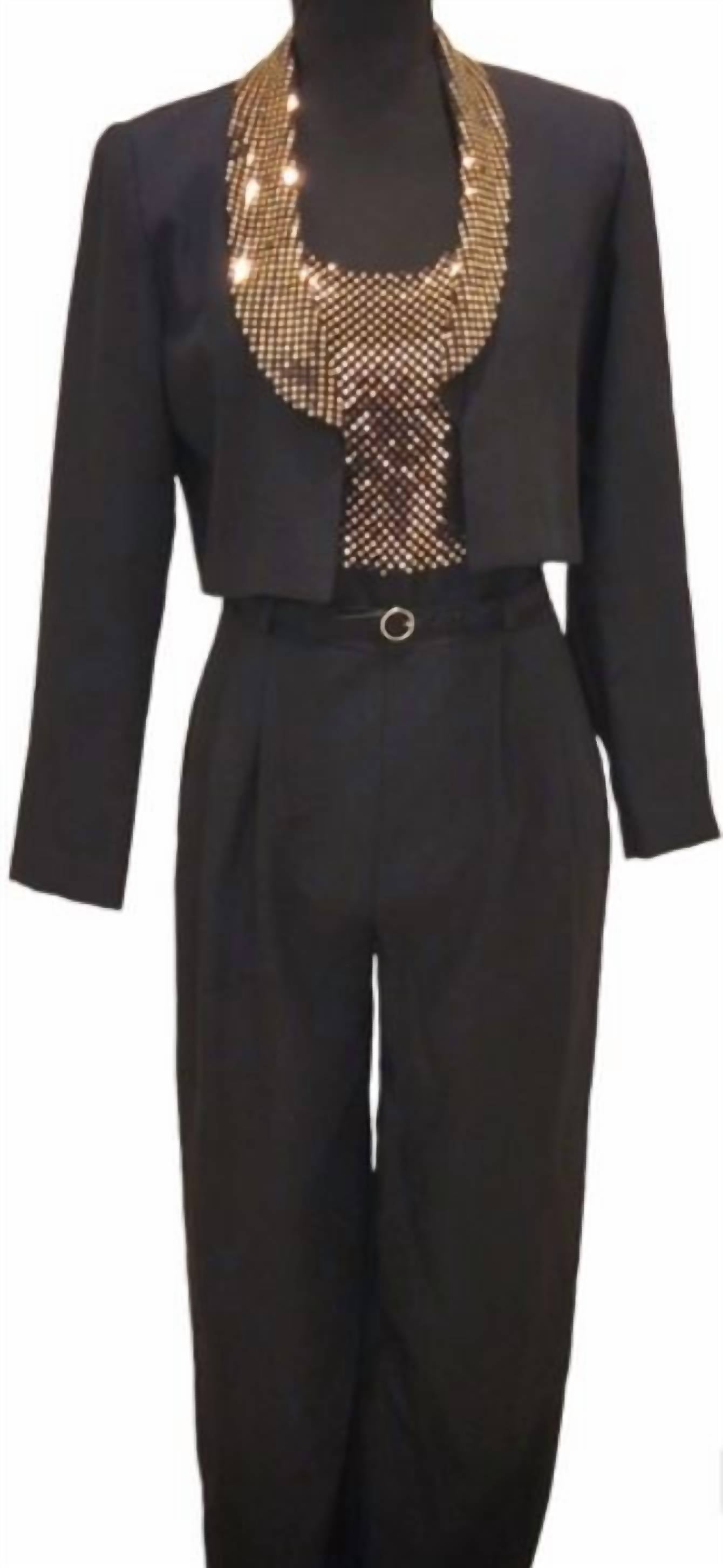 John Roberts - Women's Sequined Crop Blazer And Jumpsuit