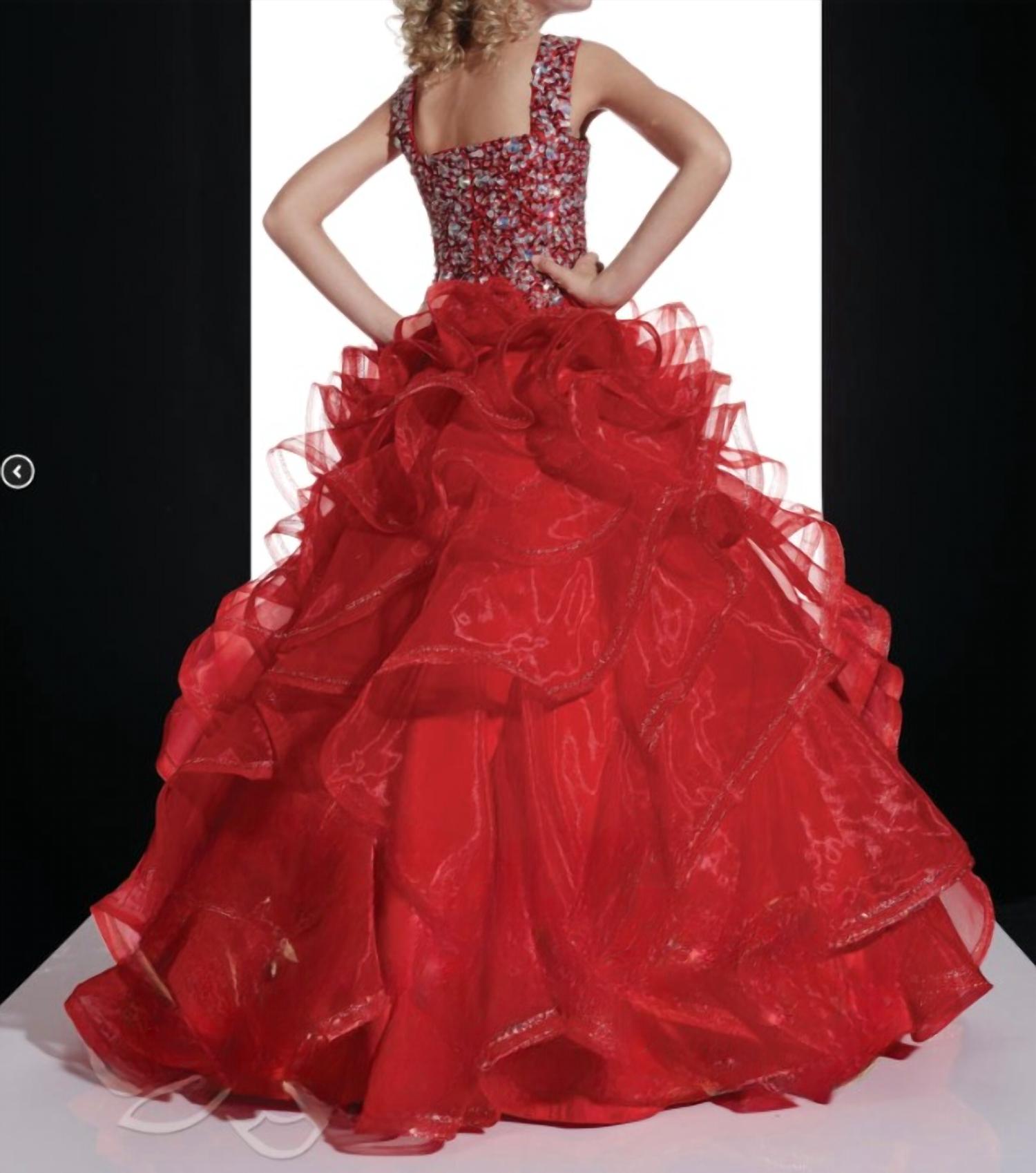 Introducing the Girls Exquisite Heavy Sequin Detail Dress by Tiffany Princess, a striking choice for formal occasions. This dress features a textured pattern that catches the light beautifully in a vibrant red hue. It is thoughtfully crafted to embody the maximalist trend, perfect for making a statement this spring.