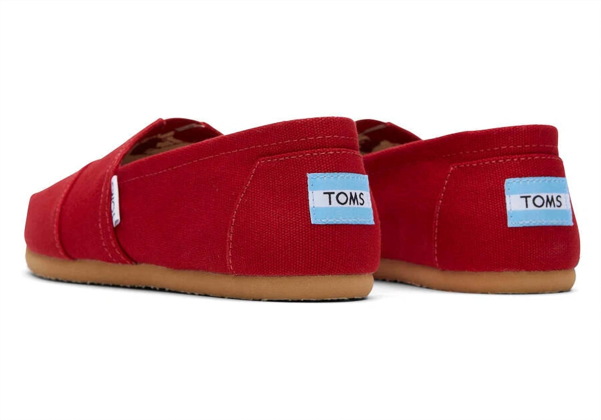 Get your daily steps in with these adorable sneakers. Step into comfort with the TOMS Women Classic Alpargatas Sneakers, featuring a navy canvas upper with iconic TOMS toe-stitch and an elastic V for easy slip-on access. These sneakers are designed with a classic suede insole and cushion for unparalleled comfort, while a latex arch insert ensures added support. The one-piece mixed-rubber outsole offers resilience, flexibility, and durability, perfect for everyday wear. Enjoy both style and functionality with these round toe, flat heel sneakers crafted for women.