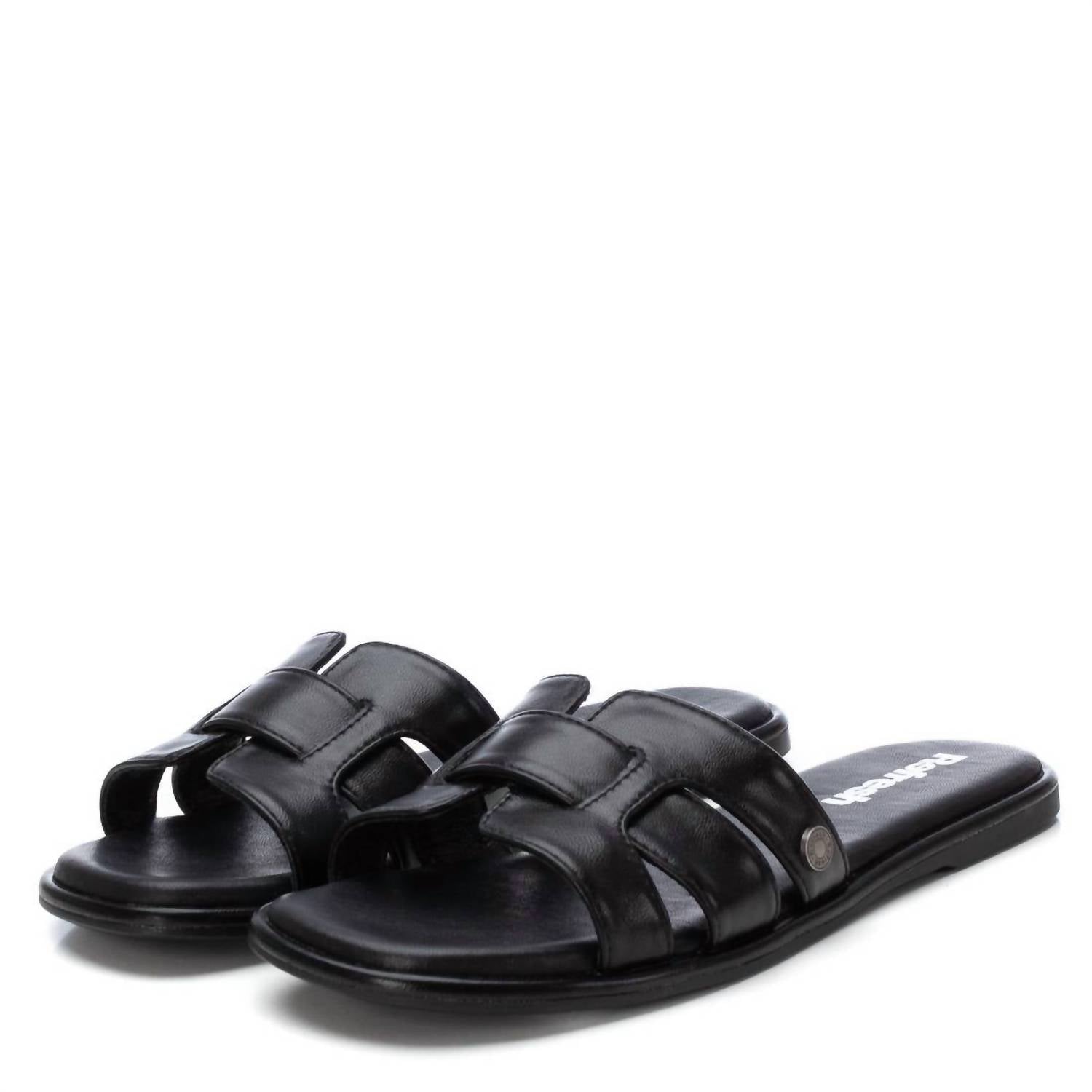 Flowy dresses, cropped pants, and even jumpsuits... this sandal works with them all! Step into style and comfort with the Women's Casual Sandals by Xti, a chic choice in sleek black designed for the modern woman. Crafted with durable nylon, these sandals boast a casual design featuring a flat heel and a round toe, ensuring your utmost comfort throughout the day. The lightweight anti-slip outsole and Comfortech insole enhance support and stability, making them perfect for both sunny beach days and relaxed evening strolls. Elevate your wardrobe with these versatile sandals that promise to keep you looking effortlessly stylish.