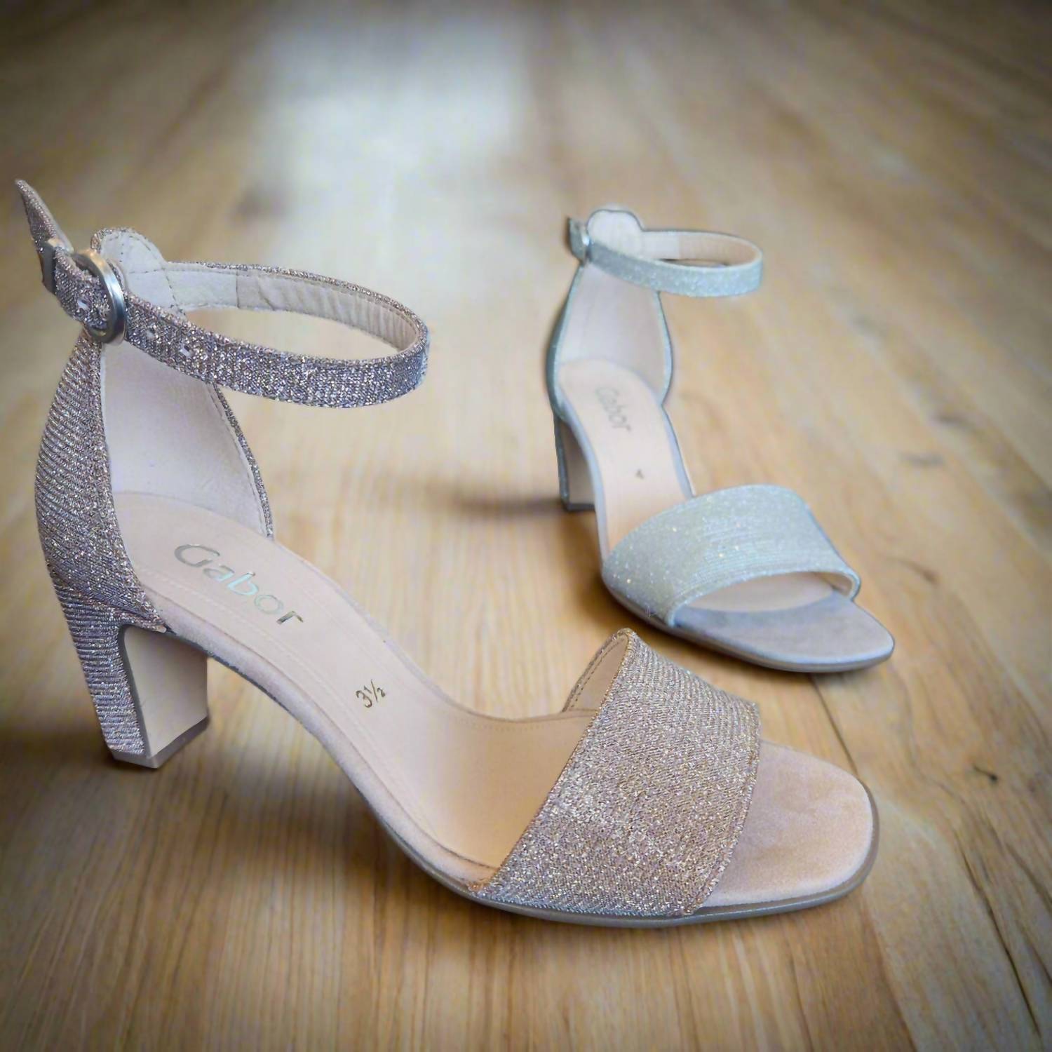Classicly cute and all-day-wearable. We love this sandal. Step into elegance with the Strappy Heeled Sandal by Gabor, crafted in stunning rose gold metallic. These women's sandals feature an open toe and a comfortable block heel with a height of 2.36 inches, ideal for adult occasions where style meets comfort. The ankle strap provides a secure fit, ensuring you can enjoy any event with confidence and ease. Perfect for those elegant evenings, these sandals are a must-have addition to your wardrobe.