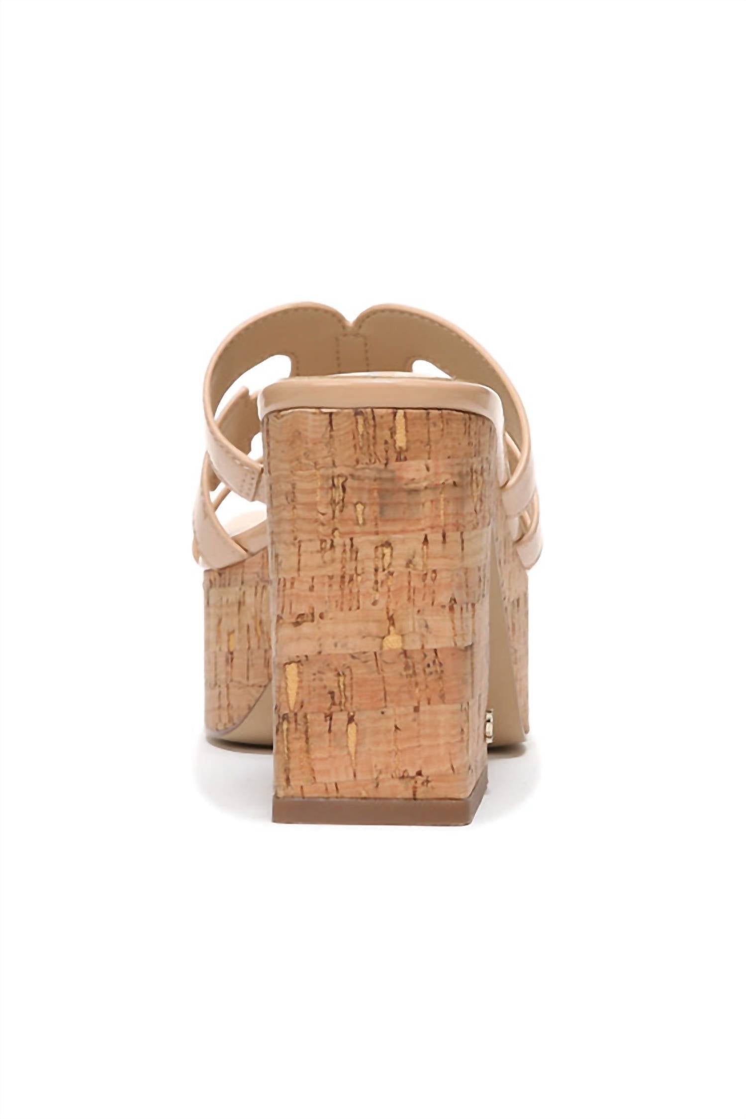 Flowy dresses, cropped pants, and even jumpsuits... this sandal works with them all! Step up your style with the Dev Platform Sandal by Sam Edelman, a bold choice for any fashion-forward woman. This chic sandal in Beige Blush features a square toe design and a slip-on closure for easy wear. Crafted from a blend of leather and synthetic materials, it boasts a chunky cork sole with a 3.75-inch high heel and a 2-inch platform for added support. Embrace comfort and style effortlessly with these statement sandals.