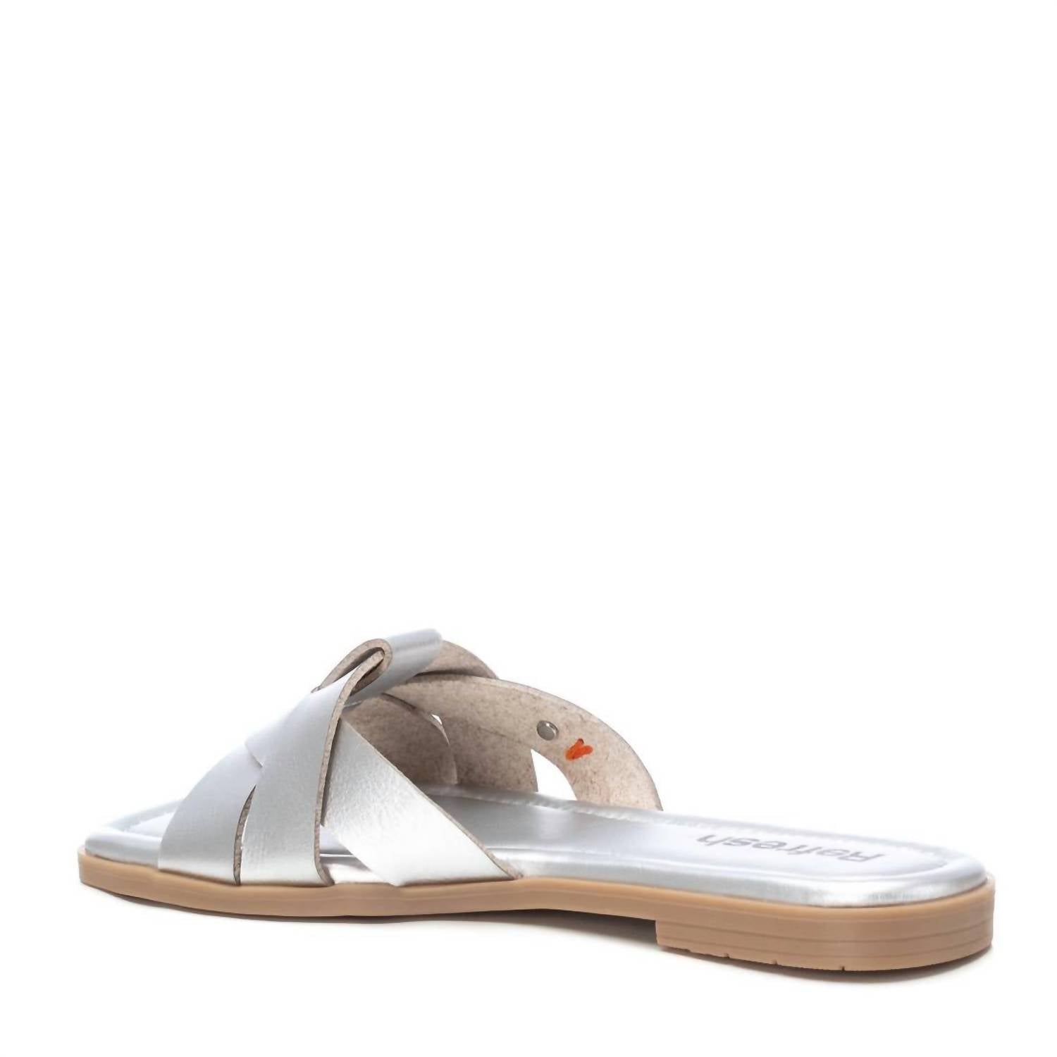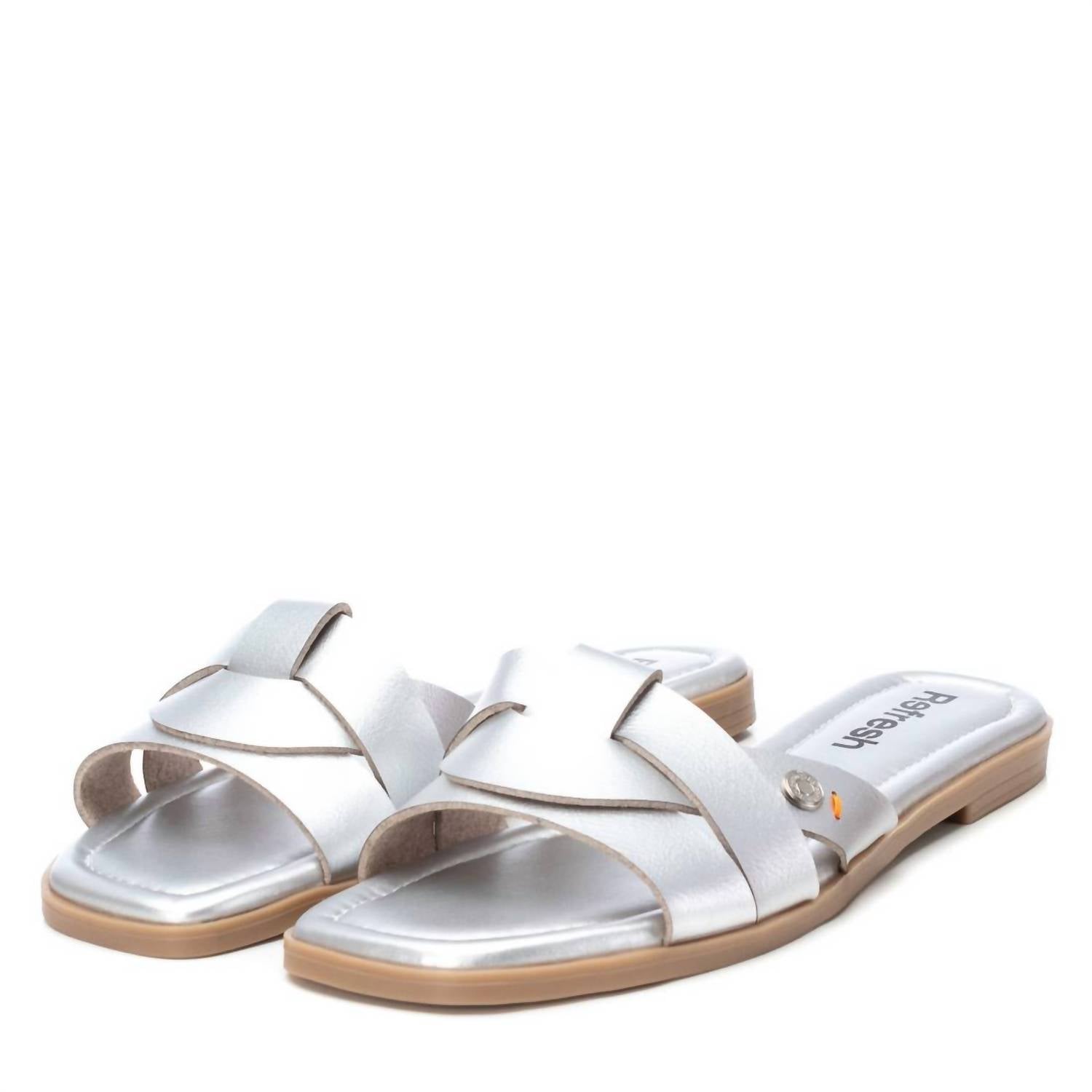 Flowy dresses, cropped pants, and even jumpsuits... this sandal works with them all! Elevate your style with the Women's Casual Sandals by Xti, crafted for both fashion and comfort in a striking hue. These sandals feature a modern squared toe and a flat heel design for easy wear, while their faux leather material with a metallic finish adds a chic edge to any look. Enjoy the flexible non-slip rubber sole and the comfortable padded insole, ensuring you stay on your feet all day. Proudly certified vegan by PETA, these sandals are a stylish and conscious choice for every season.