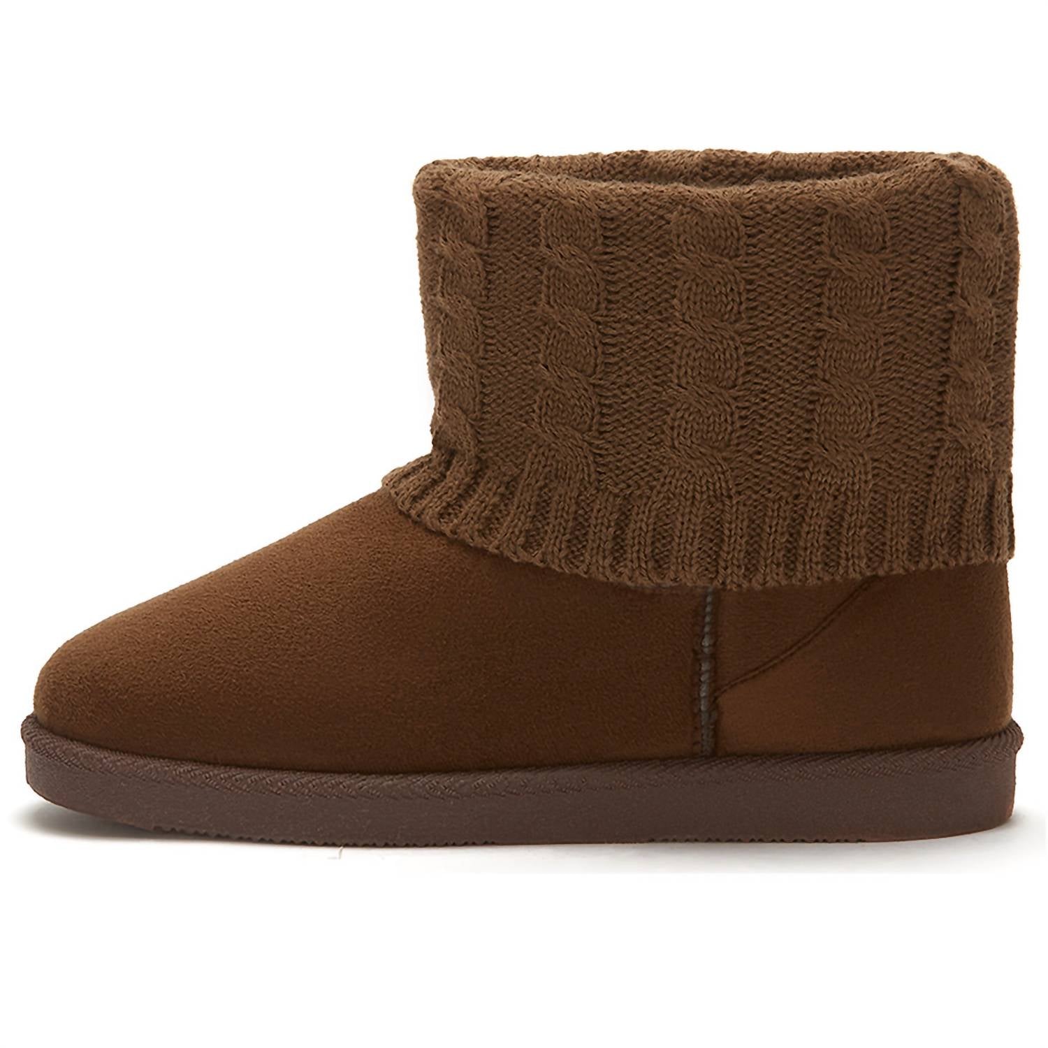 This Winter Booties feature a cozy knit shaft and durable polyester construction with a plush lining for comfort. The round toe and flat heel offer a versatile and lightweight option for chilly days.