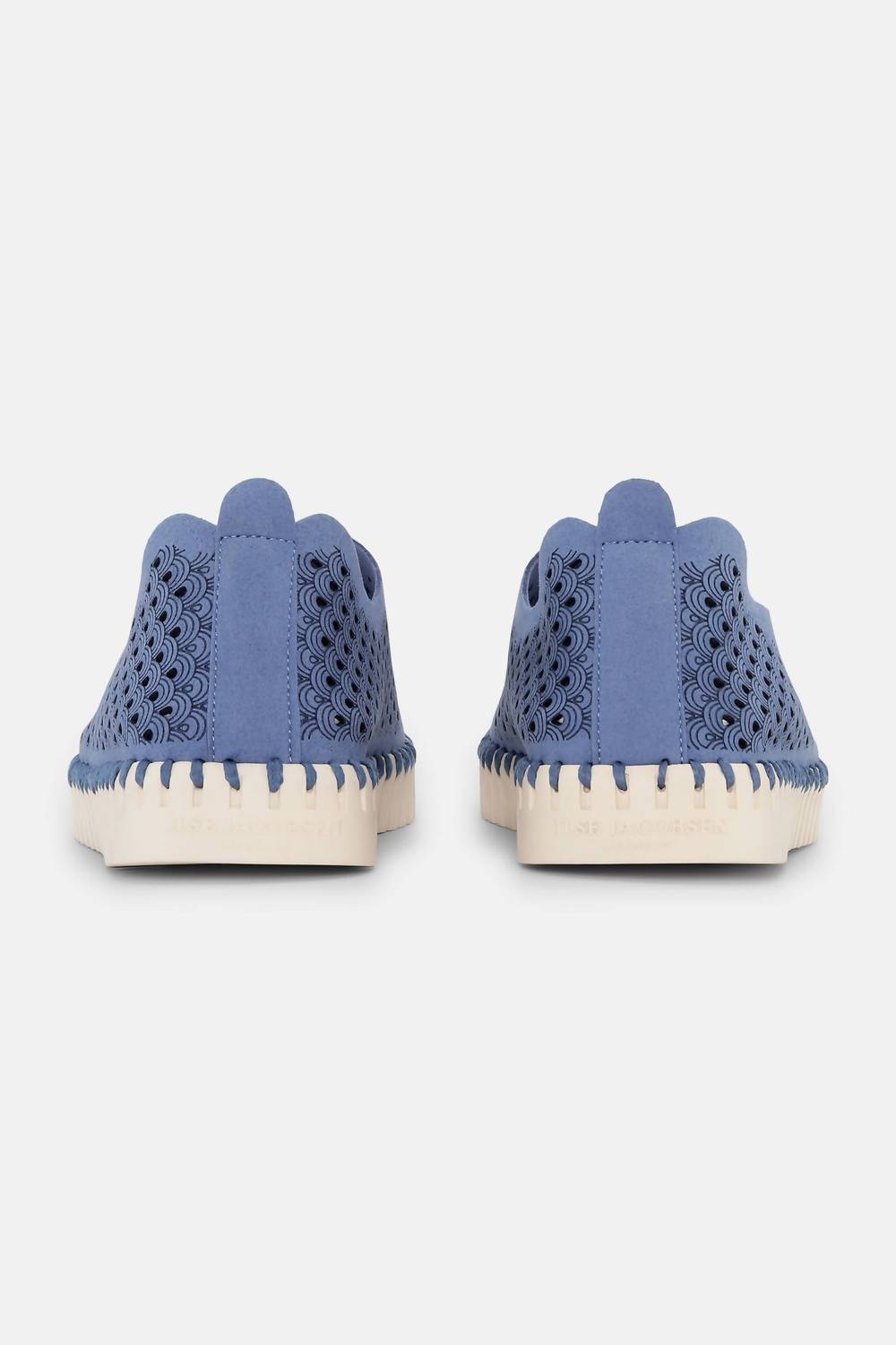 A classic loafer that is both comfortable and polished. Meet the Women's Tulip Slip-On in Light Regatta by Ilse Jacobsen, a stylish and practical choice for summer travels. Crafted with a breathable laser-cut upper and a flexible natural rubber outsole, this slip-on promises both comfort and fashion-forward appeal. The eco-friendly recycled microfiber construction and matching stitching provide a seamless look, while the round toe and flat heel offer all-day comfort. An ideal addition to your collection, this shoe pairs effortlessly with a range of colors, from basics to vibrant shades.