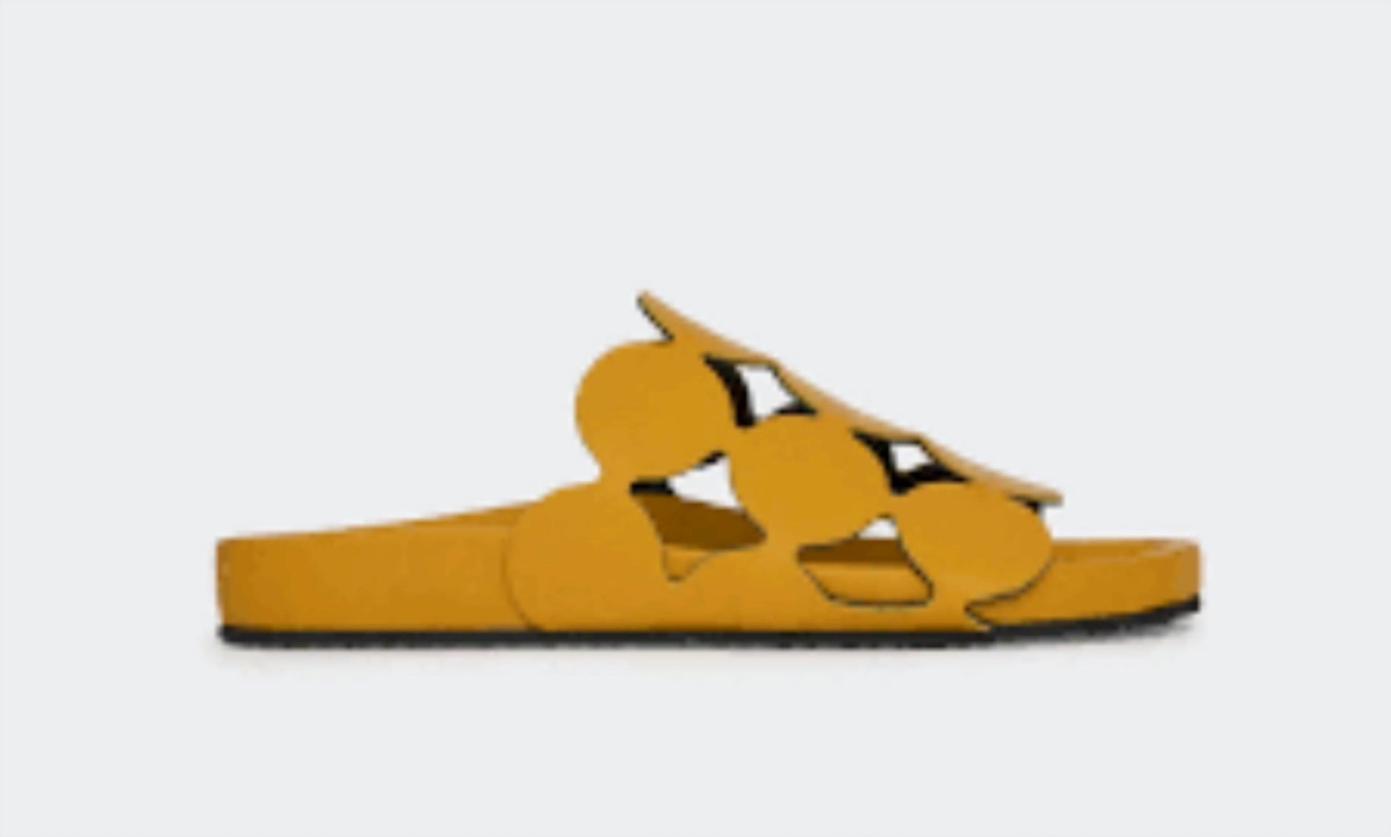 Classicly cute and all-day-wearable. We love this sandal. Step into summer with the Women's Bulles Sandals by PIERRE HARDY, a perfect blend of comfort and style. These sandals showcase a vibrant Calf Yellow hue, complemented by a round toe and a flat heel for easy, all-day wear. With a design tailored for the modern woman, they promise to be a staple in your warm-weather wardrobe. Ideal for adult women, these sandals are crafted to ensure you stay chic and comfortable throughout the season.