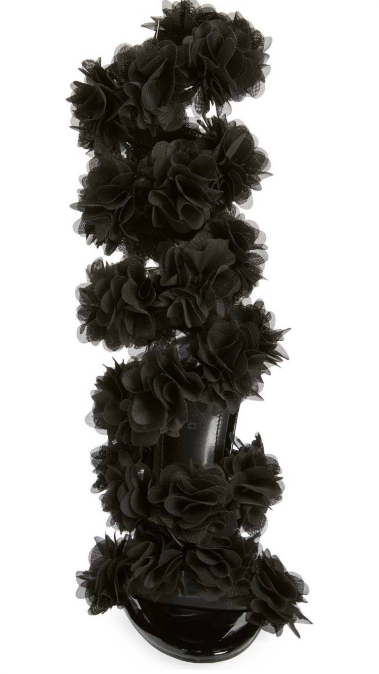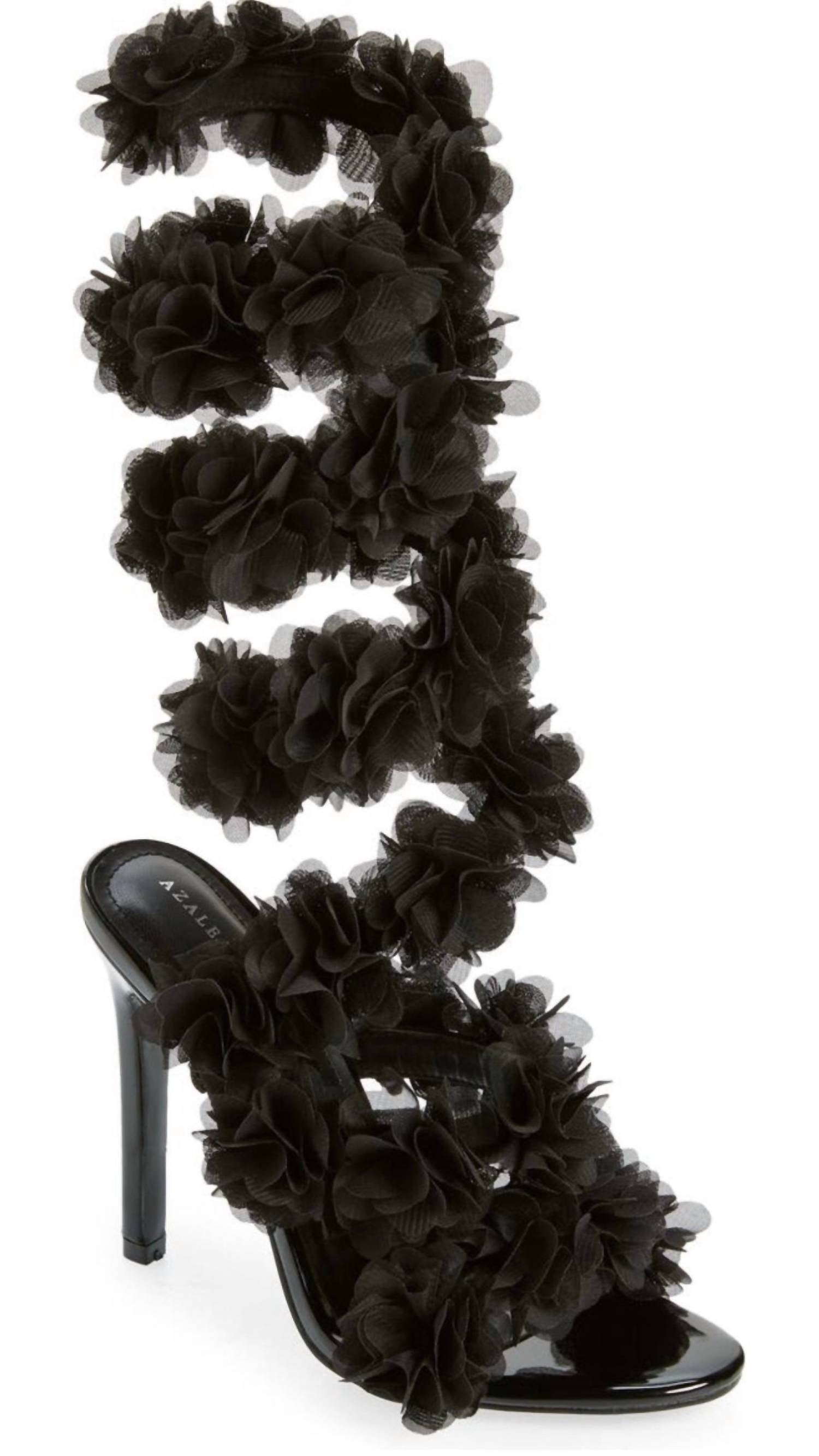Don't be deceived, these heels are comfy as can be. Make a statement with the Women's Theodosia Sandals by AZALEA WANG, designed to elevate your look with every step. Crafted with a synthetic upper, lining, and sole, these sandals feature a tulle floral embellishment and a patent leather finish, perfect for a black-tie event. With a striking 4.5” stiletto heel and almond toe shape, they provide a sophisticated lift suitable for day to night wear.