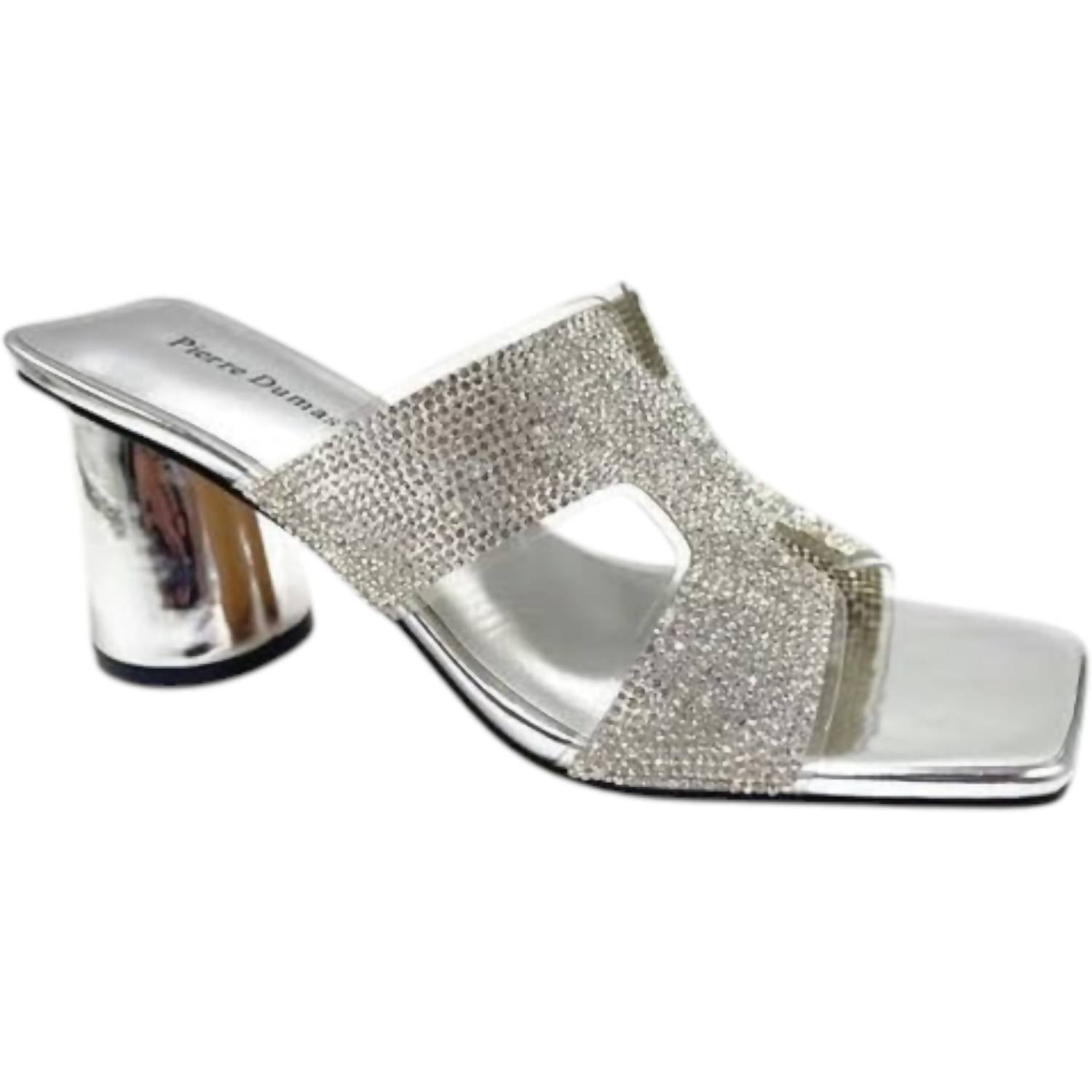 Elevate your style with the Women's Capri 3 Sandals by Pierre Dumas, a perfect blend of sparkle and elegance in a chic silver shade. Featuring a 2.5-inch chunky mid-heel, these sandals are adorned with rhinestone accents and an open-toe design, perfect for adding sophistication to any outfit. Designed as slip-on shoes, they effortlessly match various styles, making them a staple for weddings and fall occasions with a nod to 90s fashion trends. Ideal for women seeking standout heels for special events, these sandals are sure to impress.