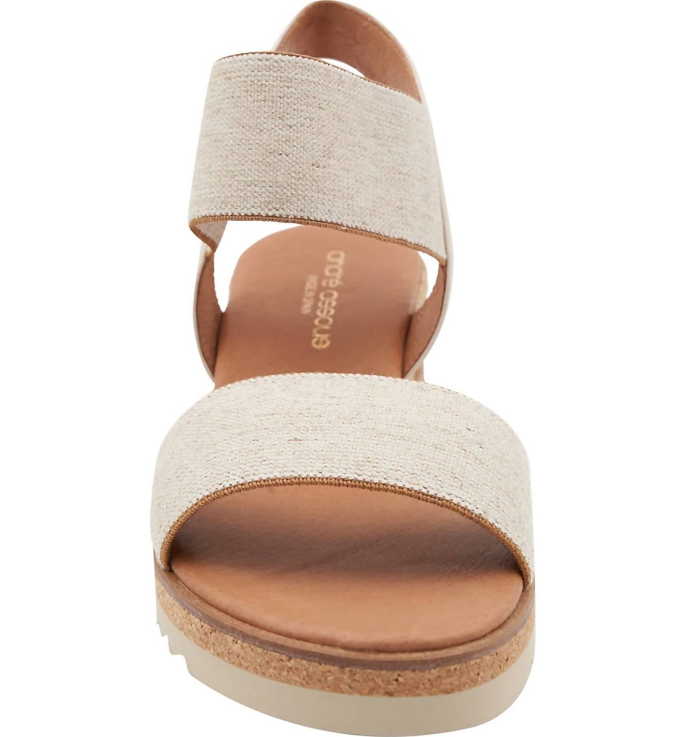 Elevate your footwear game with these adorable wedges. Sleek and minimal, these strappy pull-on espadrilles are an easy go-to for versatile styling all spring and summer long. Materials: Sole – Rubber. Heel – Raffia & Cork. Footbed – Leather. Lining – Leather. Upper  – Elastic. Measurements: Heel height – 2.5 inches. Platform height – 1.2 inches. Features: Cushioned footbed . Breathable. Lightweight. Made in Spain. The shoe fits true to size, but if you are in between sizes we recommend choosing the larger size.