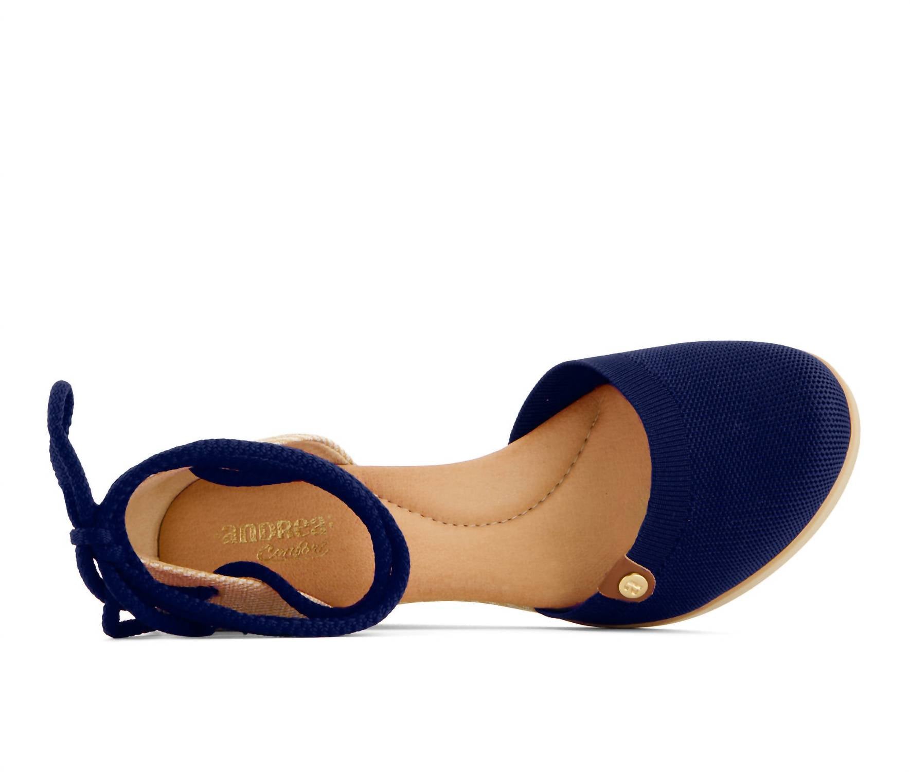 Pair these with white denim or your favorite day dress. Elevate your shoe collection with the Women's Wedge Ankle and Calf Strap Espadrilles by Andrea, crafted in a stylish navy hue. These espadrilles feature a comfortable foam insole and a distinctive rubber material for lightweight ease. With a mid-height 2.75" wedge heel, they are perfect for a boho chic look, ideal for holiday parties or any springtime gathering. Designed with a round toe shape and versatile style, they seamlessly blend comfort and fashion.