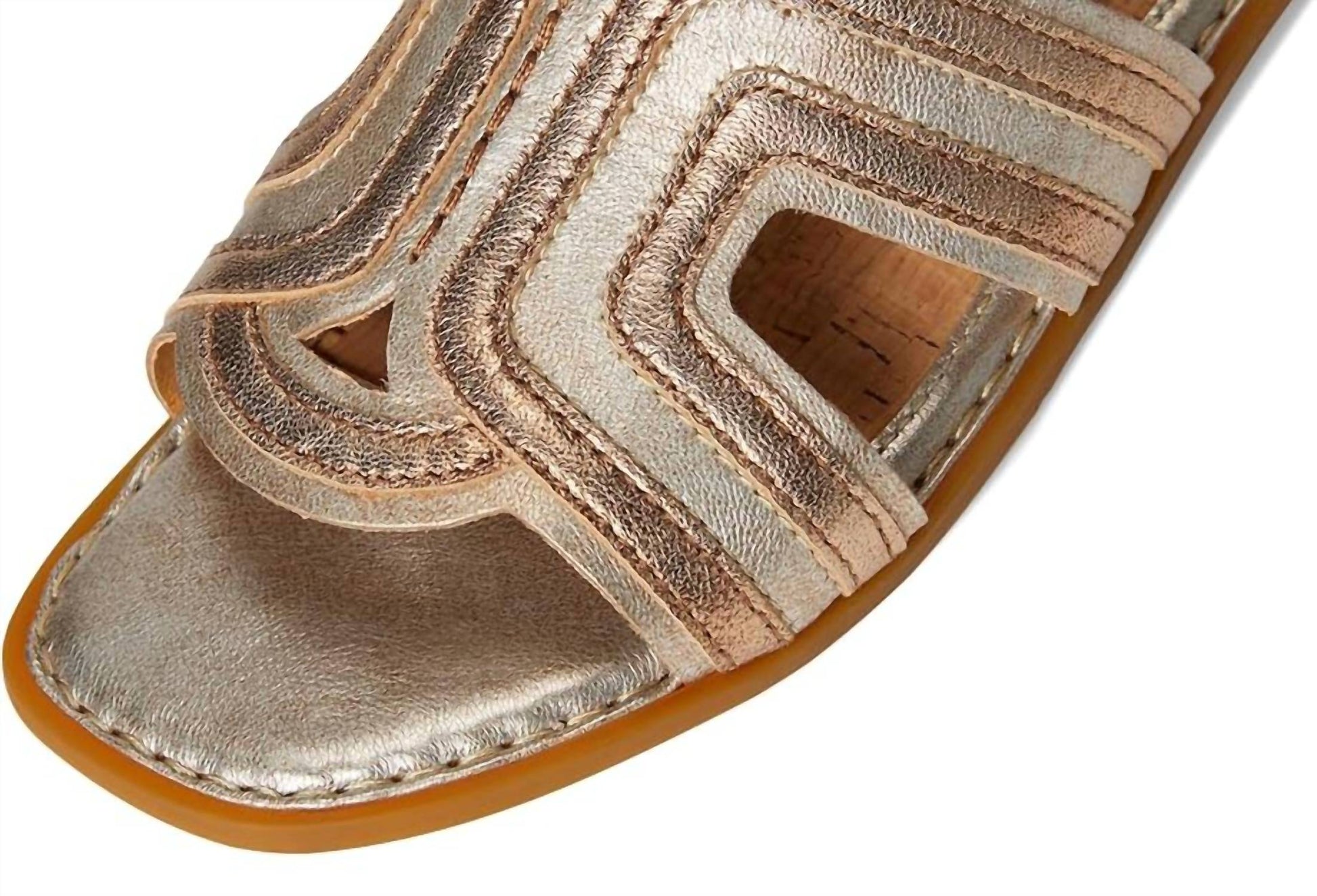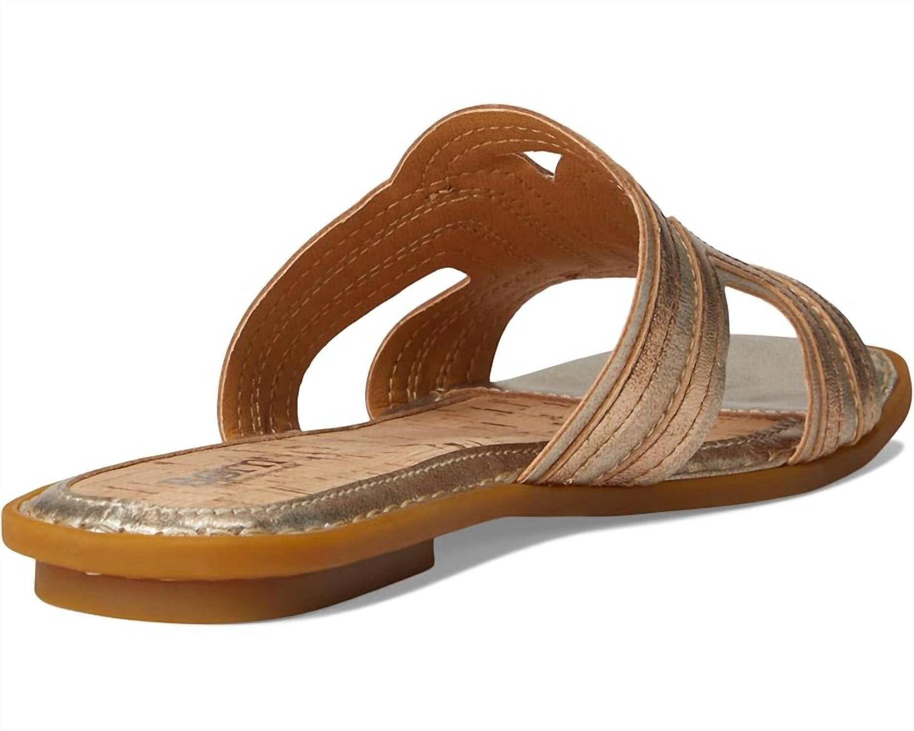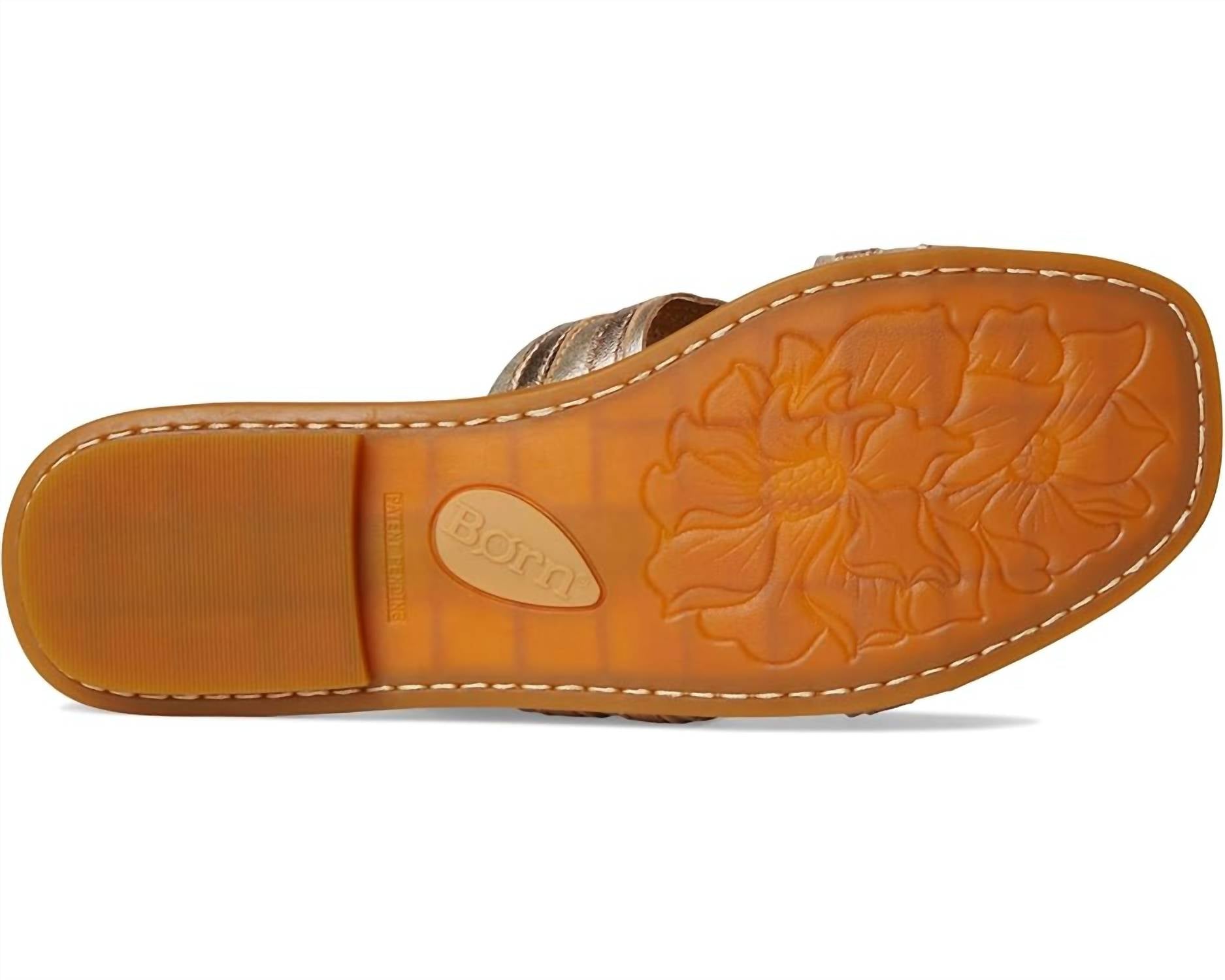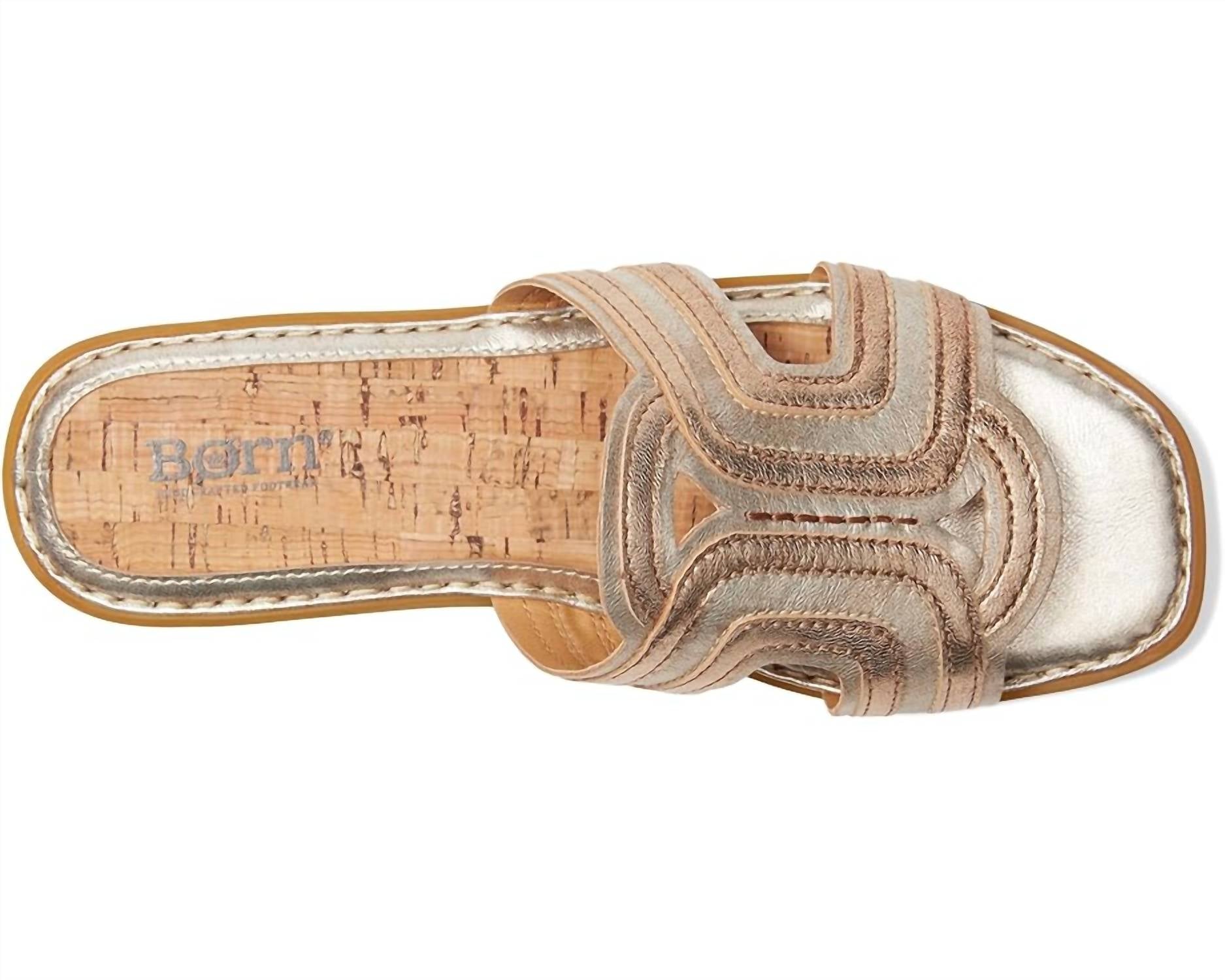 This sandal will take you from brunch to dinner and everything in between. Step into style and comfort with the Women's Hyannis Sandals by Born, elegantly crafted in Light Gold. These sandals feature a premium leather upper and a squared toe shape, providing both sophistication and durability. Expertly constructed with Opanka handcrafted techniques, they ensure a refined finish. The breathable microfiber lining and leather-cork cushioned footbed, enhanced with extra foam, offer superior support for all-day wear.