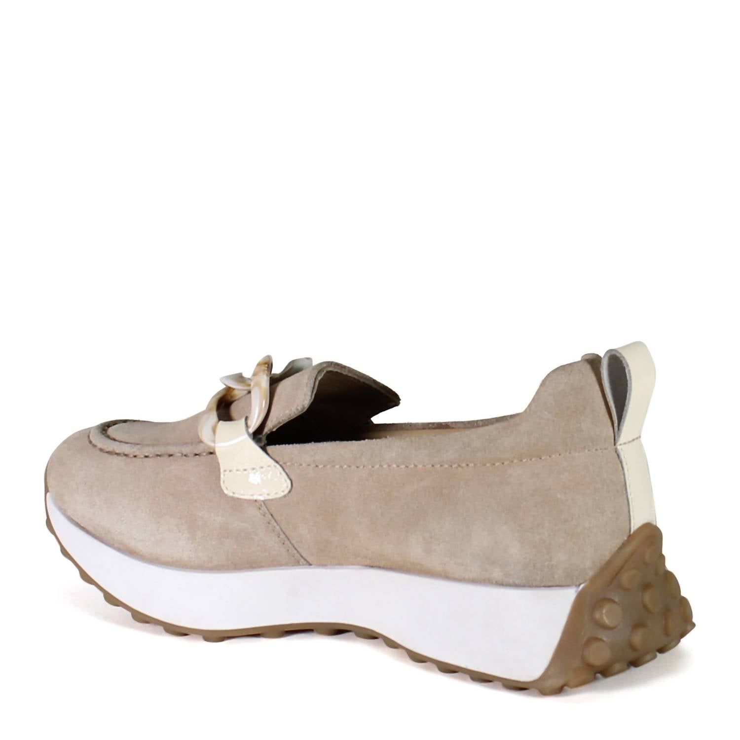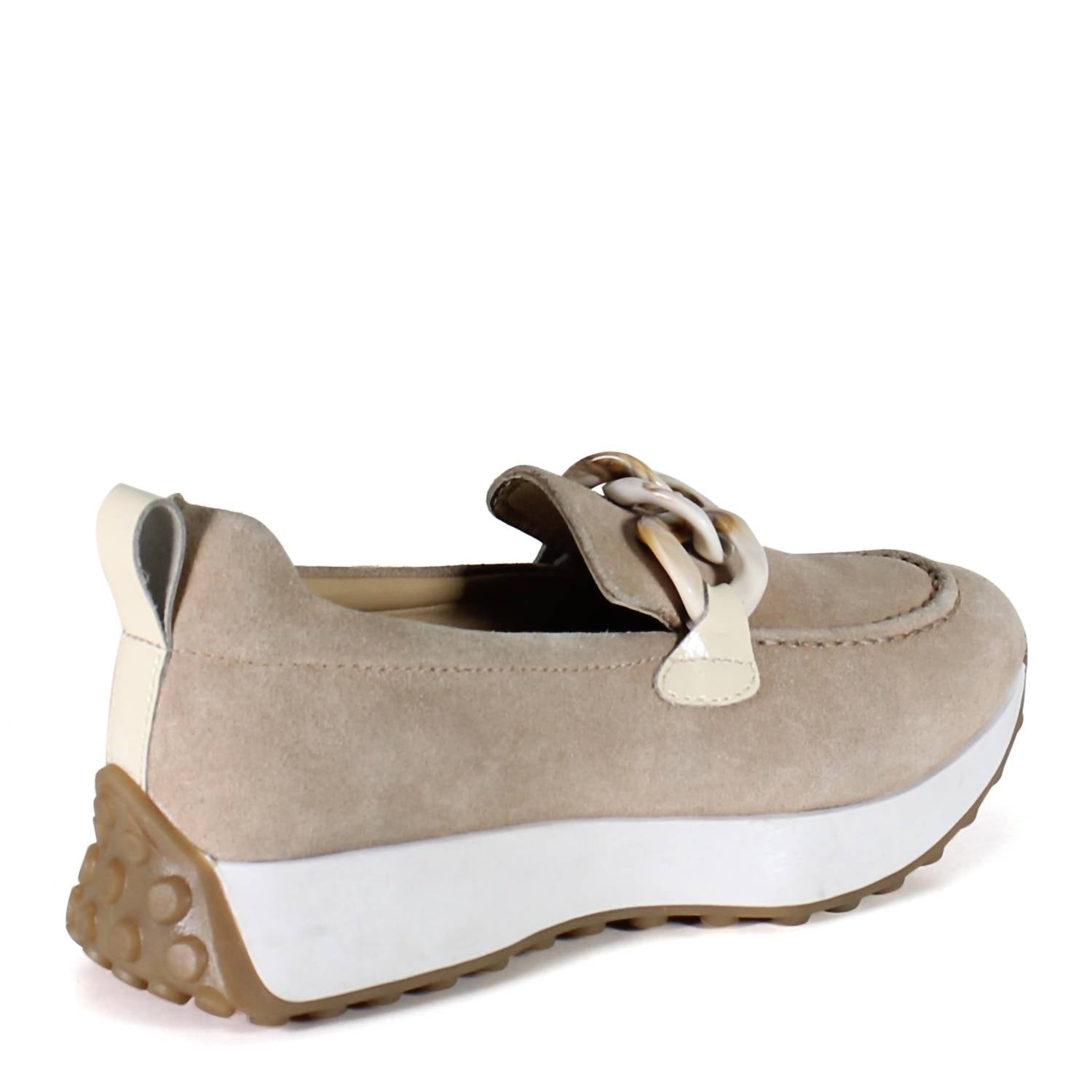 Get your daily steps in with these adorable sneakers. Step up your footwear game with the Women's Kind Words Sneaker by DIBA True, a chic blend of loafer-inspired style and sporty ease. This taupe sneaker features a suede upper adorned with a standout chain-link accent, perfectly capturing the streetwear trend for spring. The design includes a 1-inch chunky heel and a round toe, providing lightweight support for your vacation adventures. Slip-on closure ensures effortless wear, making it an ideal choice for women seeking bold style and lasting comfort.