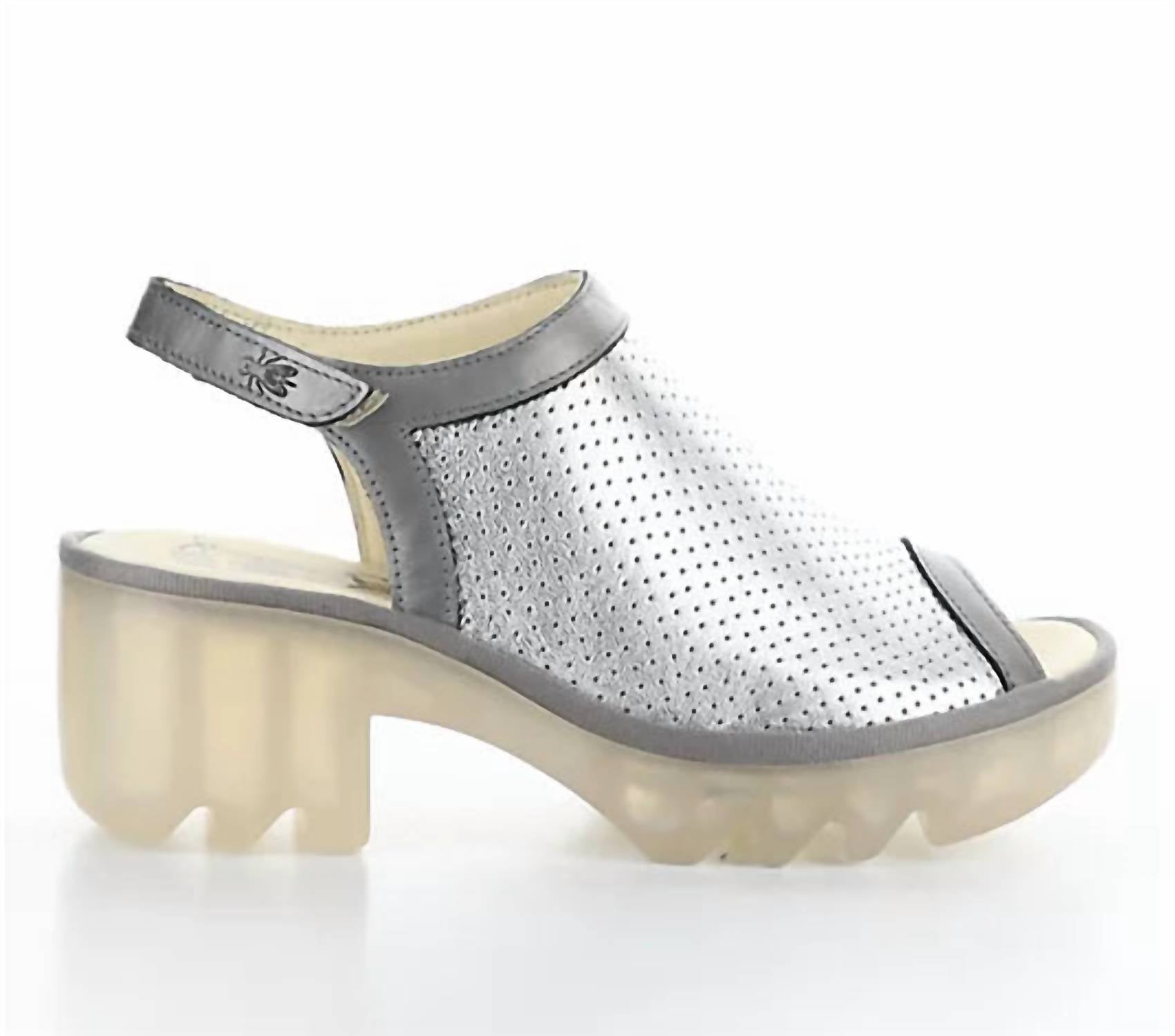 Flowy dresses, cropped pants, and even jumpsuits... this sandal works with them all! Step out in style with FLY LONDON's Women's Teif Sandals, perfect for any occasion from brunch to shopping sprees. These sandals offer a 2.5-inch wedge heel with a silver metal leather upper and a microfiber lining, ensuring both durability and elegance. Featuring a hook-and-loop strap for easy wear, the sandals have a cushioned insole and a flexible rubber outsole for all-day comfort. Originating from imported materials, they fit true to size and cater to a minimalist, chic look perfect for spring and holiday gatherings.