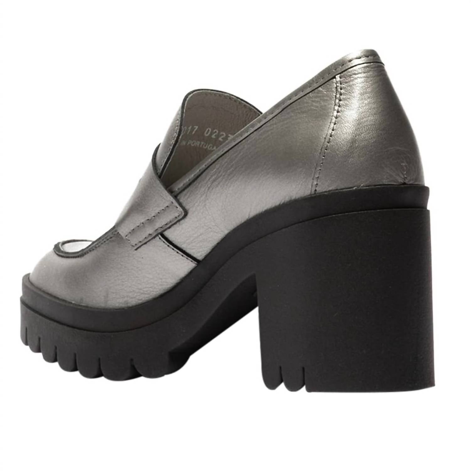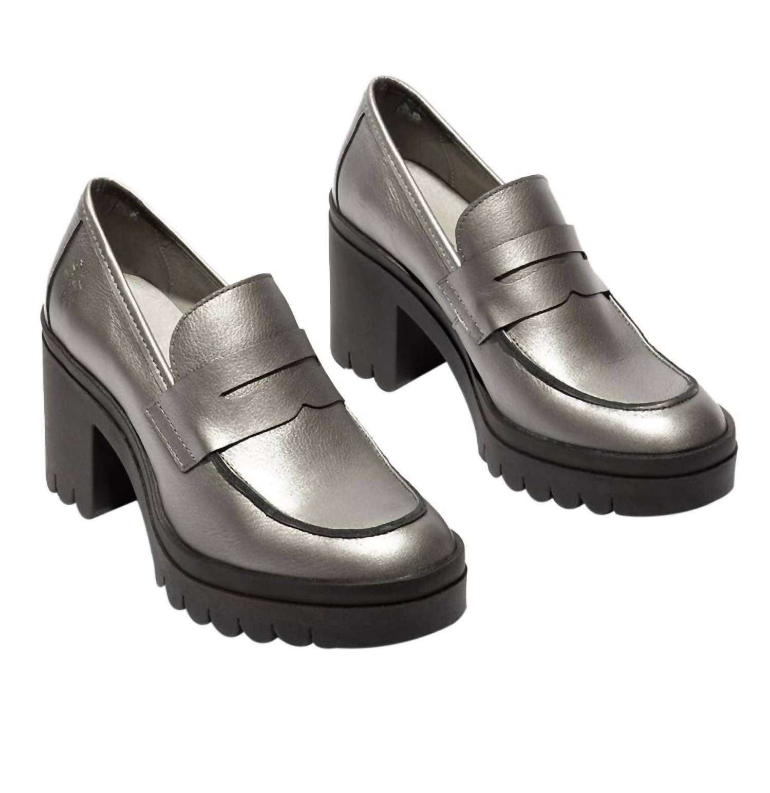 Elevate your wardrobe with the Women's Toky Platform Penny Loafer by FLY LONDON, a retro-inspired piece that effortlessly combines style and comfort. Made in Portugal, these loafers are crafted with a luxurious leather upper and lining, complemented by a durable rubber sole. The shoe features a 3" chunky block heel and a 1 1/4" platform, offering a vintage appeal with modern comfort via a well-cushioned footbed. Ideal for evening events, these plomo-toned loafers are a timeless choice for any fashion-savvy individual seeking a balance of elegance and practicality.