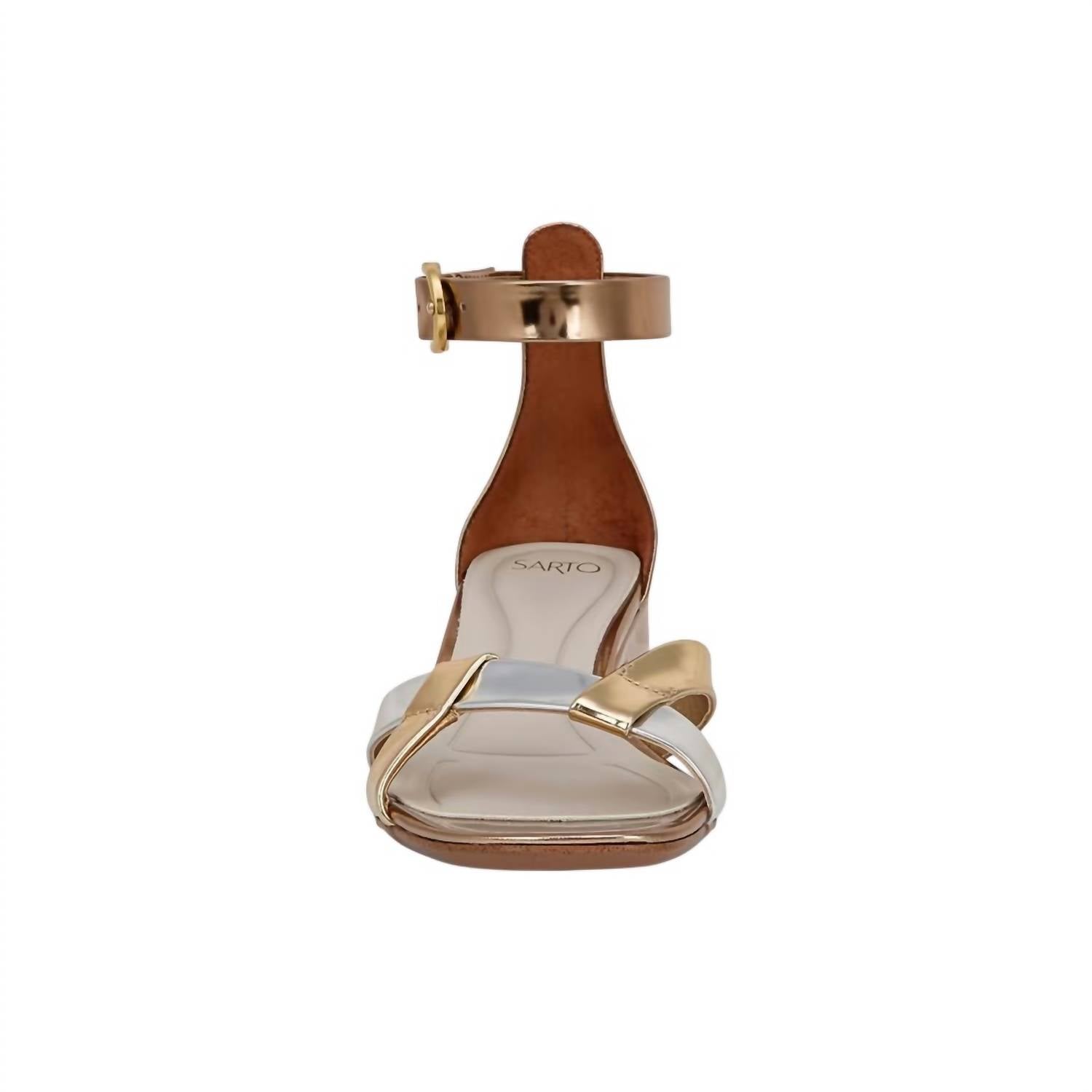 Classicly cute and all-day-wearable. We love this sandal. Elevate your style with the Women's Nerissa Dress Sandal by Franco Sarto, a perfect choice for quiet luxury on any occasion. Crafted from high-quality bronze leather, this sandal features a graceful ankle strap with an adjustable buckle closure for a secure fit. The design includes a chic square toe complemented by a 1.75-inch block heel, making it ideal for summer events like dinner parties and New Year's Eve celebrations. Embrace timeless elegance and enjoy versatile comfort with this stunning sandal in your collection.