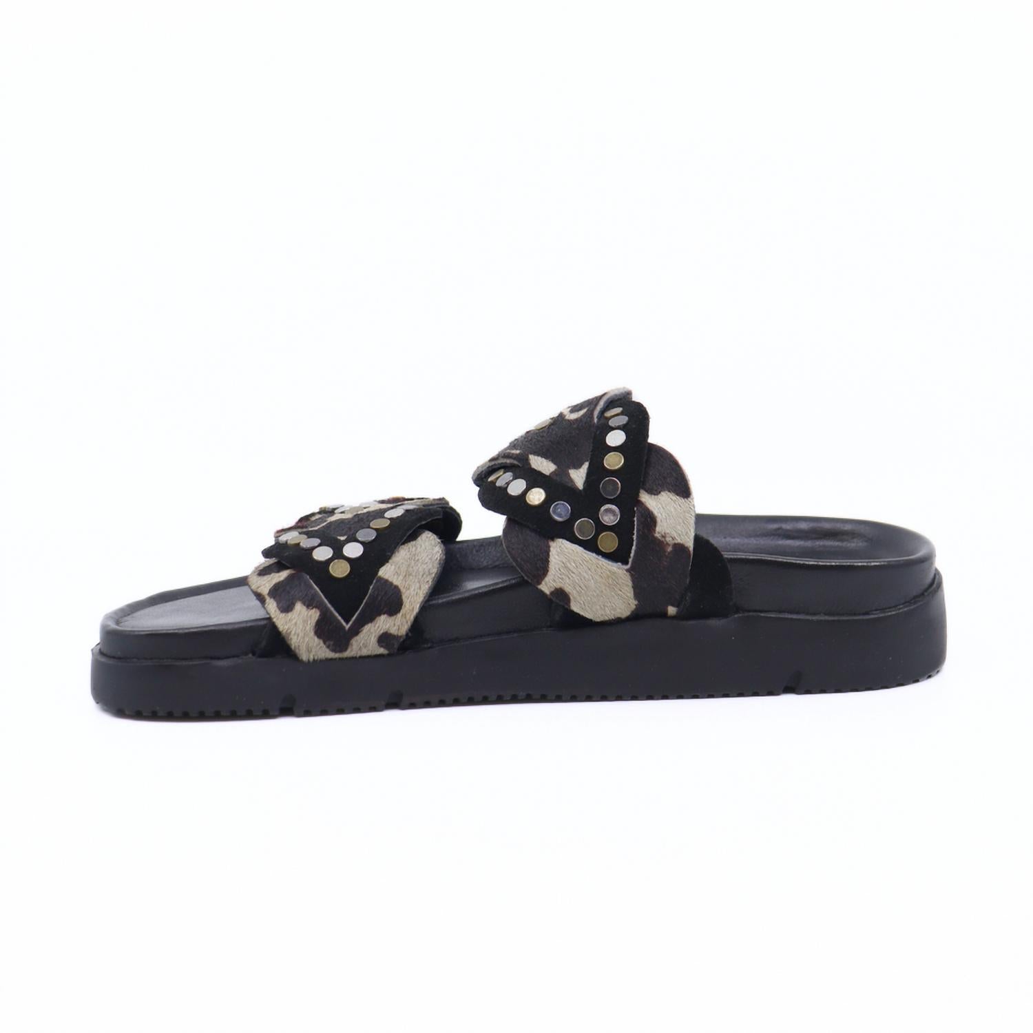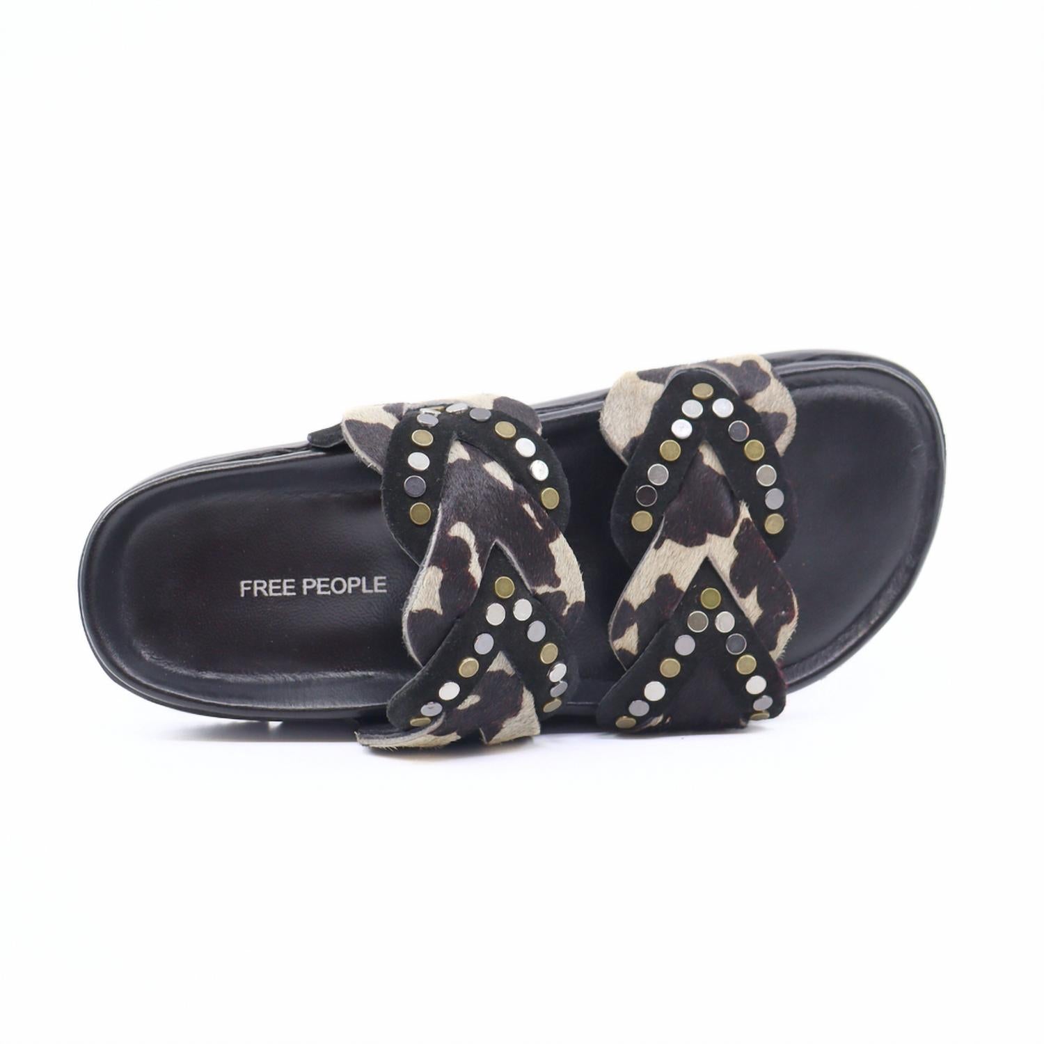 Free People - Women's Leo Studded Leather Cow Print Banded Flat Slide Sandals