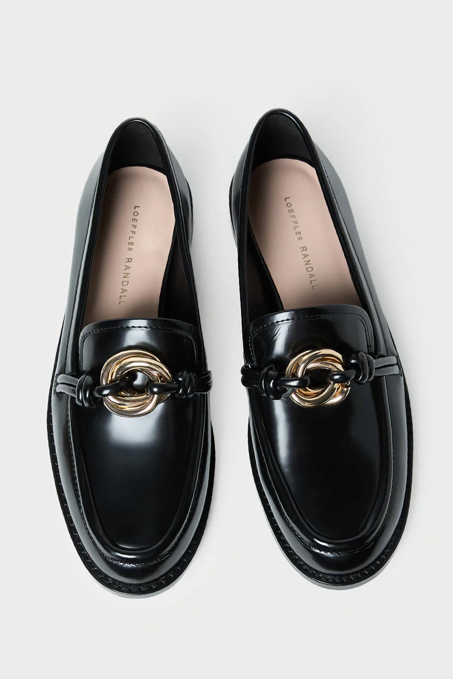 Loafers so versatile you can wear them with just about anything. Meet the Women's Roma Loafer by Loeffler Randall, a chic addition to your spring workwear ensemble. Crafted from 100% cow leather with a bovine leather outsole, this black nappa leather loafer features a slip-on design and a rounded toe for effortless elegance. Enhances its sophisticated vibe is twisted metallic hardware detailing, while a padded leather footbed ensures all-day comfort. With a subtle 0.75-inch flat heel, it's perfect for a holiday party or even a Valentine's Day outing.