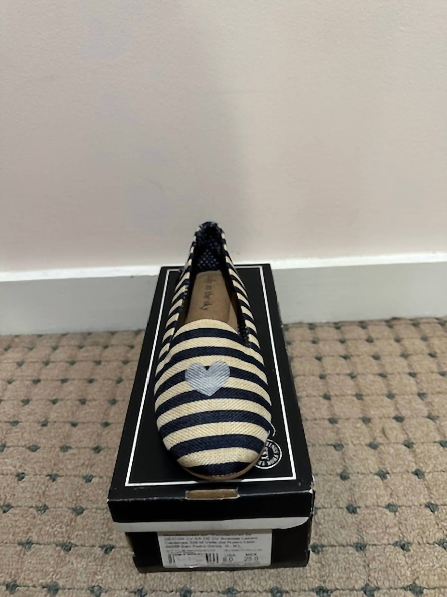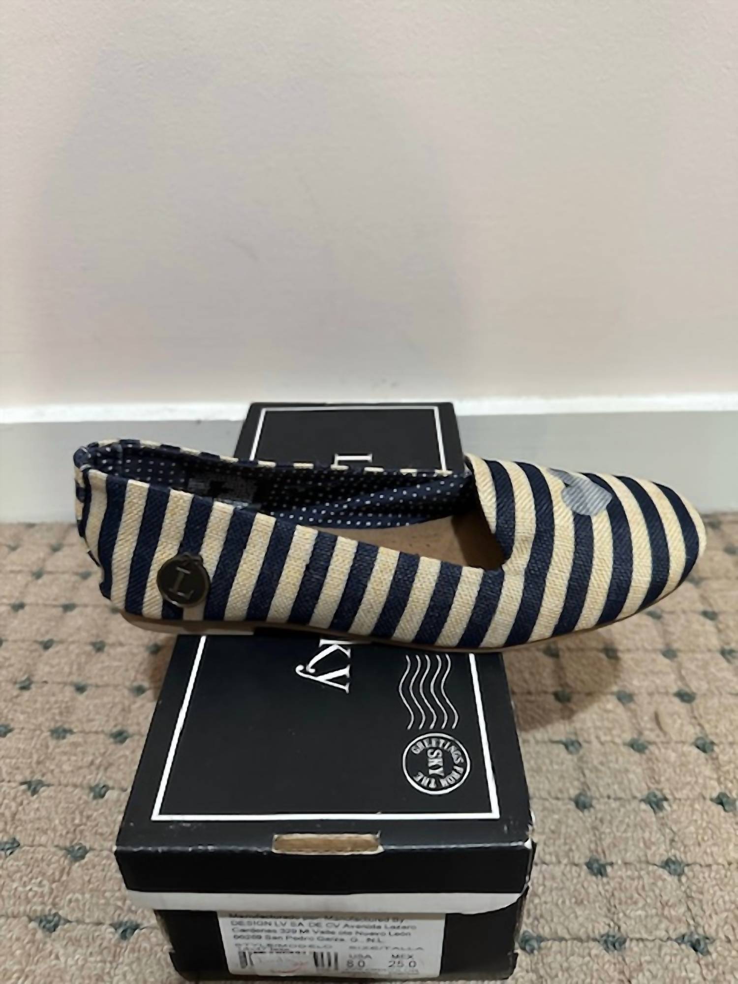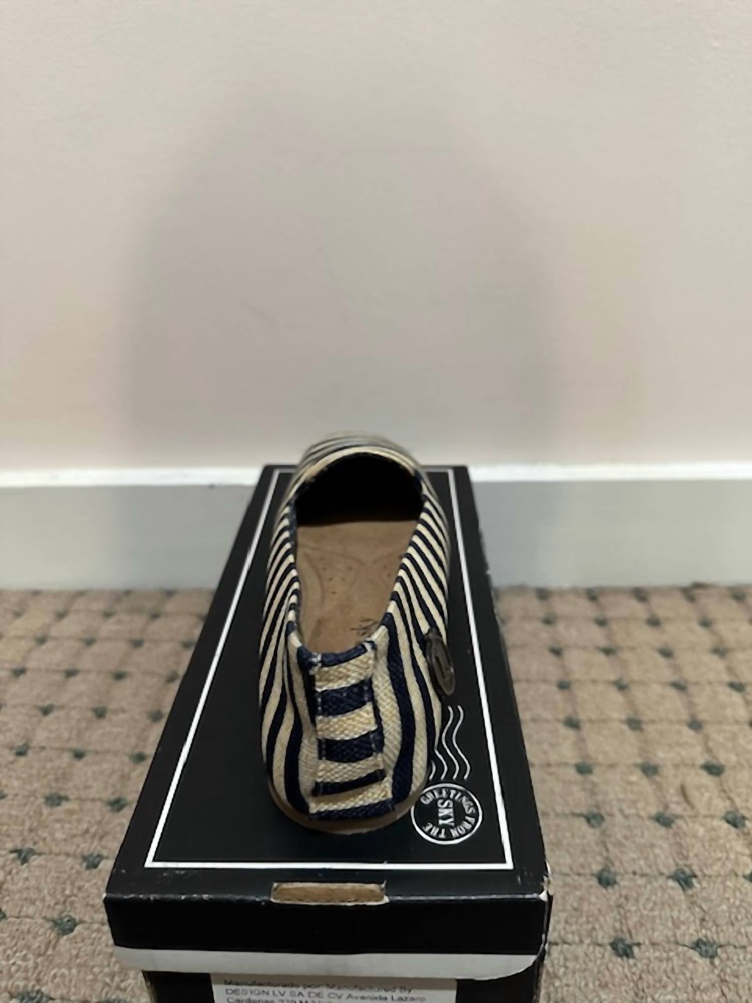 A preppy yet feminine take on the classic loafer. Step into elegance with the Women's Laila Flat Shoe by Loly in the Sky, featuring a stylish beige and blue stripe design that's perfect for a holiday party. These flats are designed with a round toe and a minimalist aesthetic, making them ideal for spring. The flat heel style ensures all-day comfort with a heel height of 1" and under, perfect for the modern woman. Embrace the combination of fashion and function with this chic and versatile shoe.