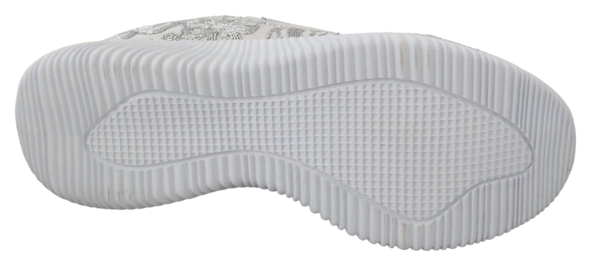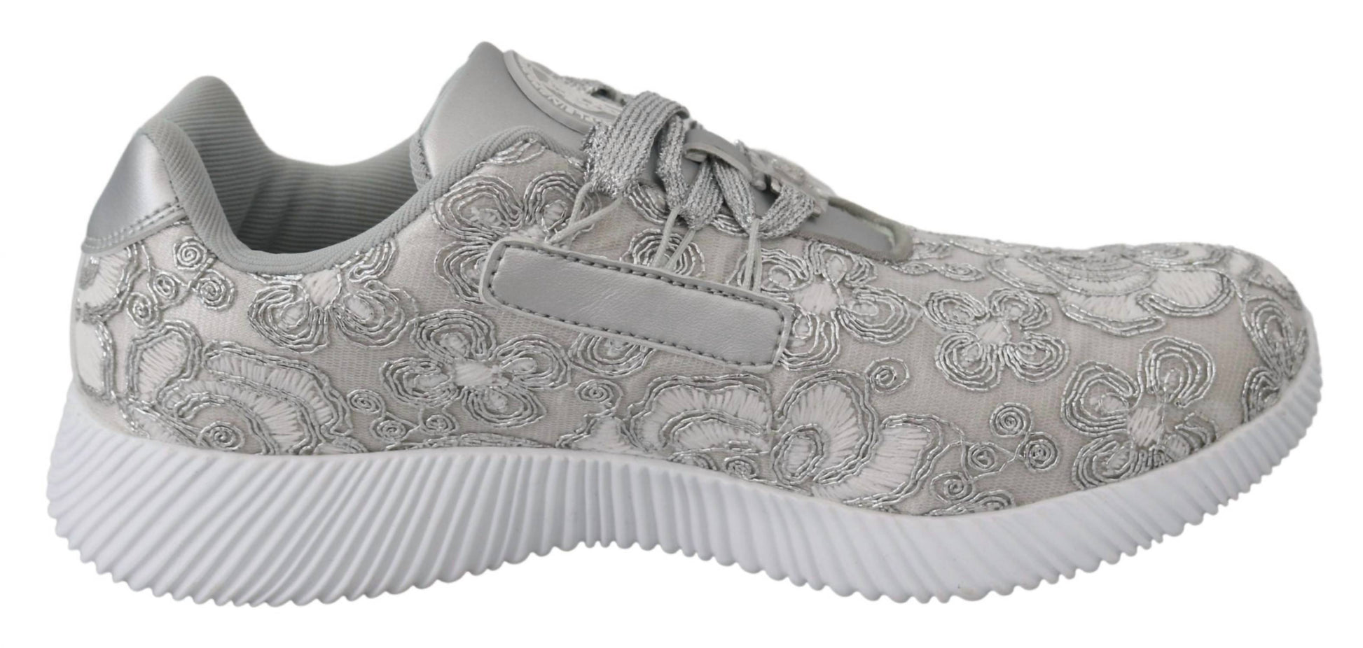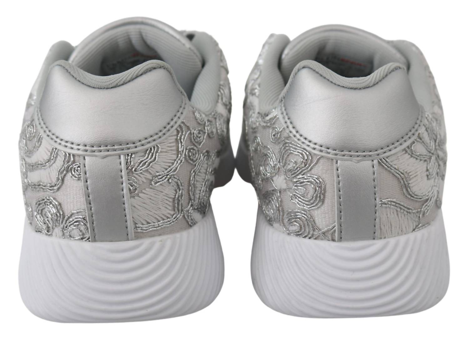Get your daily steps in with these adorable sneakers. Step up your style game with Plein Sport Women's Runner Joice Sneakers in a sleek silver hue. Crafted from durable polyester, these sneakers offer a minimalistic appeal and are finished with rubber soles for optimum grip and comfort. The round toe design and flat heel make them ideal for everyday wear, seamlessly blending fashion and function. Whether you're hitting the gym or the streets this spring, these exclusive sneakers embody high craftsmanship and attention to detail.