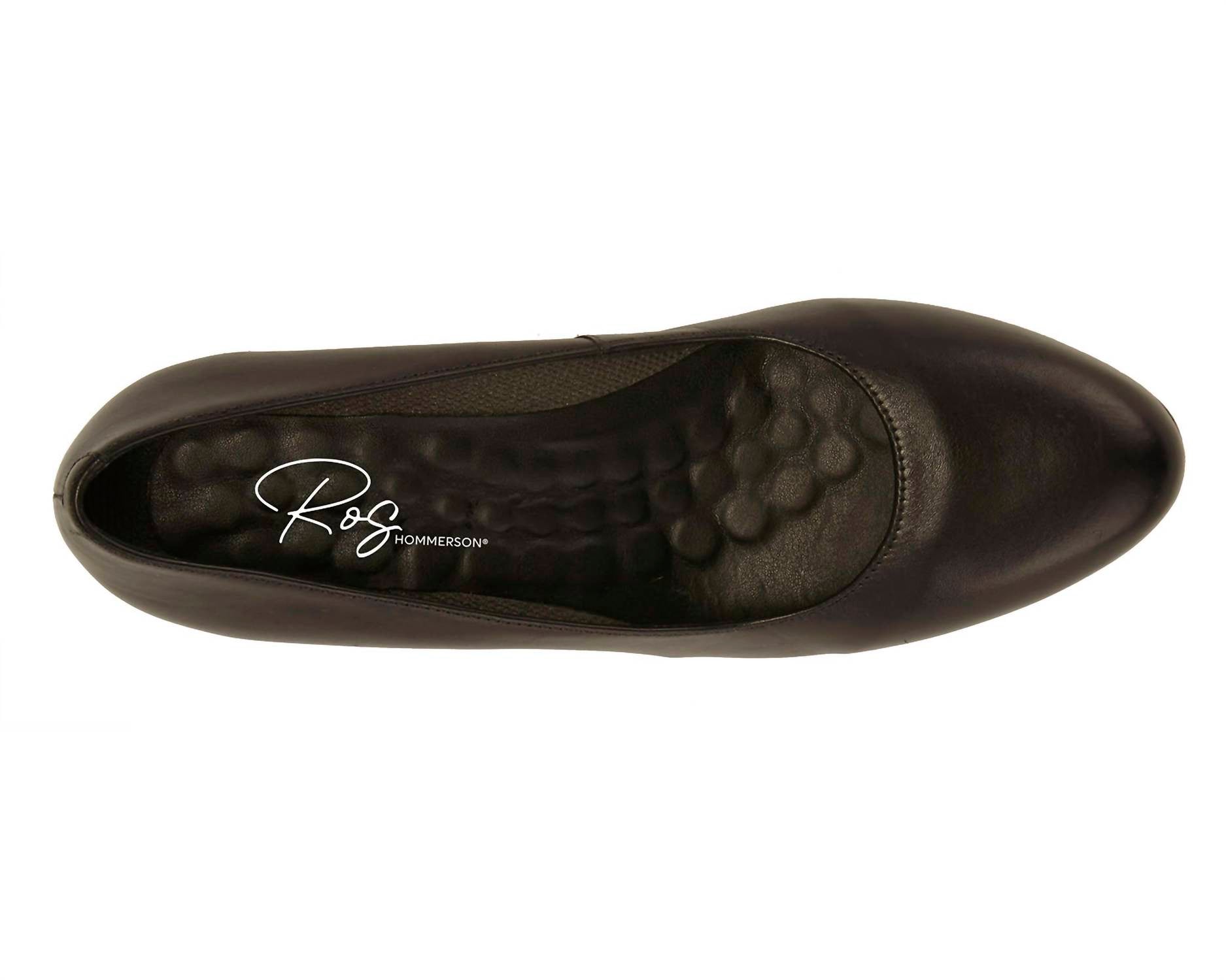 Pair these beauties with your favorite skinny jeans or dress for a night out on the town. Discover impeccable comfort with the Women's Joy II Heeled Shoes by Ros Hommerson, crafted with genuine leather uppers in sleek black. Made in Brazil, these pumps feature a modest 2" heel and are lined with knit fit and moisture-wicking linings for all-day dryness. Enjoy the cushioned Tiny Pillows insoles that provide a massaging sensation, complemented by a spot cemented footbed for easy insole removal. Finished with a polyurethane sock lining and rubber outsole, these heels promise both style and support.