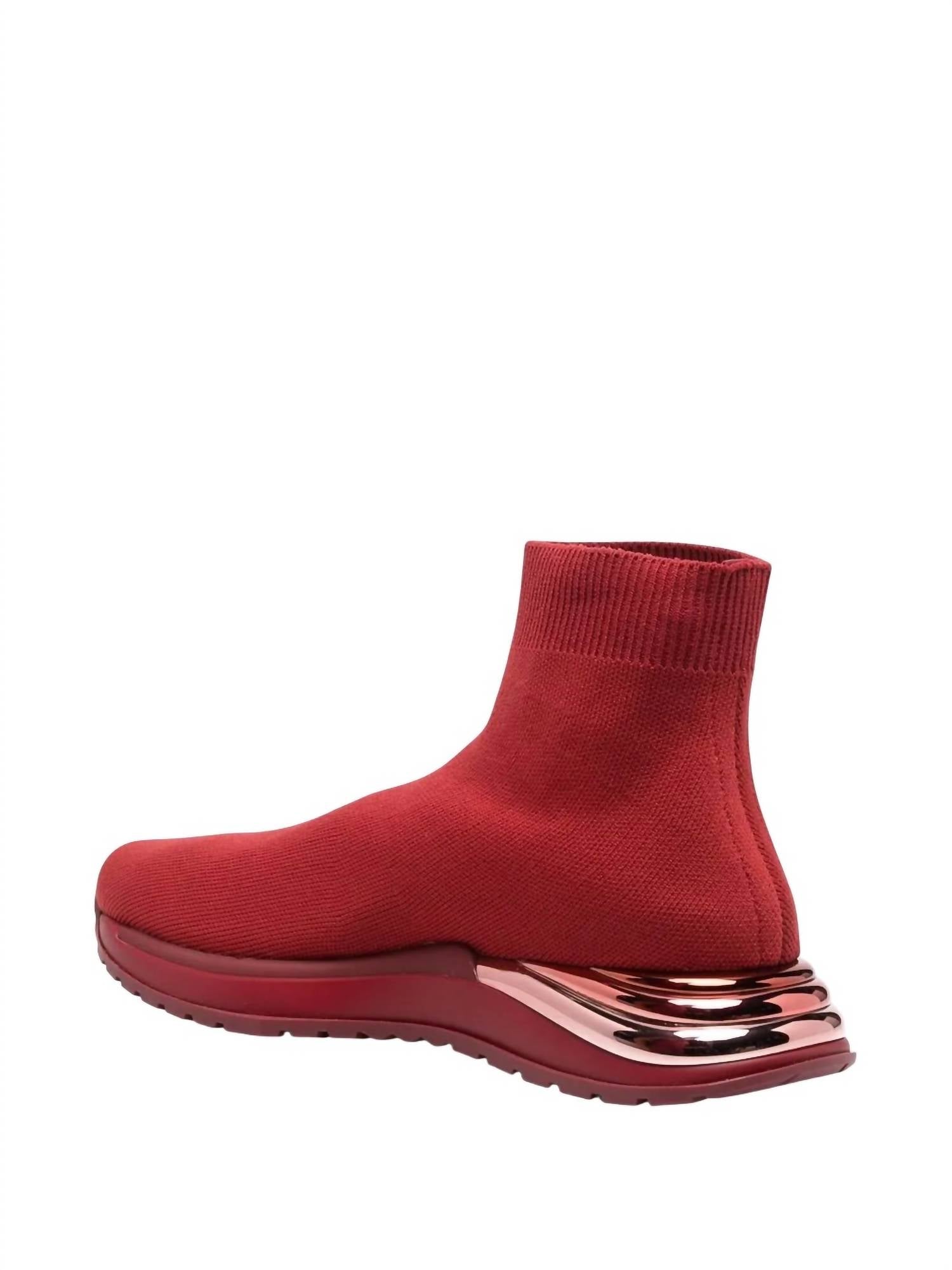 Cute, functional, and comfortable. These sneakers check all the boxes. Discover the Women's Knitted High-top Sock Sneakers by Salvatore Ferragamo, a chic and comfortable addition to your footwear collection. These red sneakers feature a sock-style ankle with a knitted construction and a ribbed-knit edge for a snug fit. The shoes boast a slip-on style with a logo print on the side, an almond toe, and a chunky rubber sole for enhanced durability. Made in Italy, they consist of 100% leather lining, a 100% rubber sole, and 100% fabric outer.
