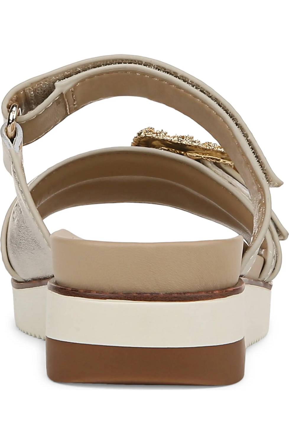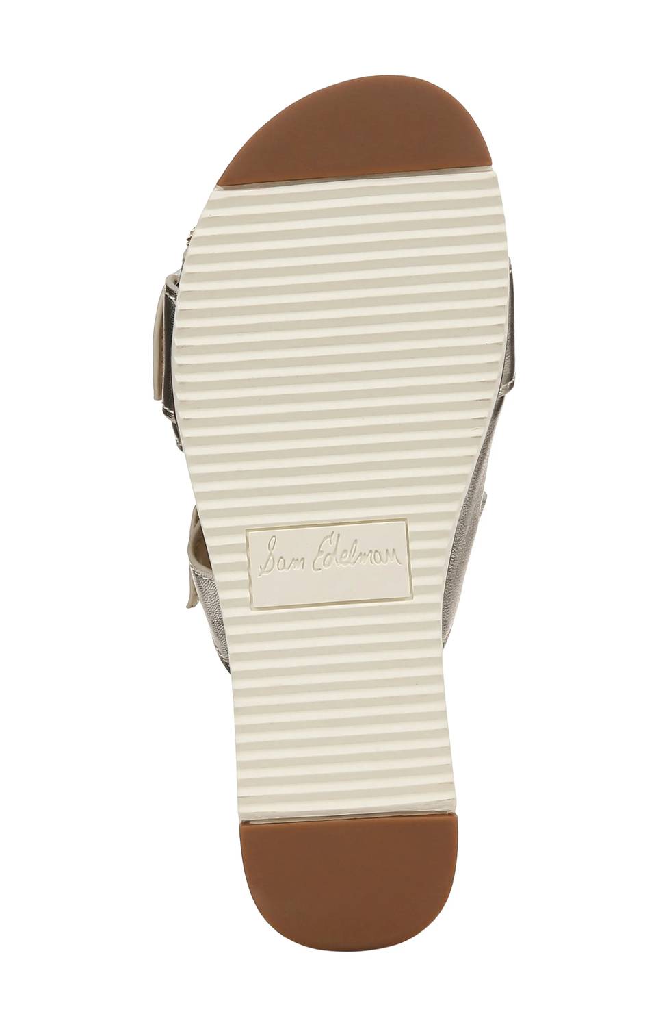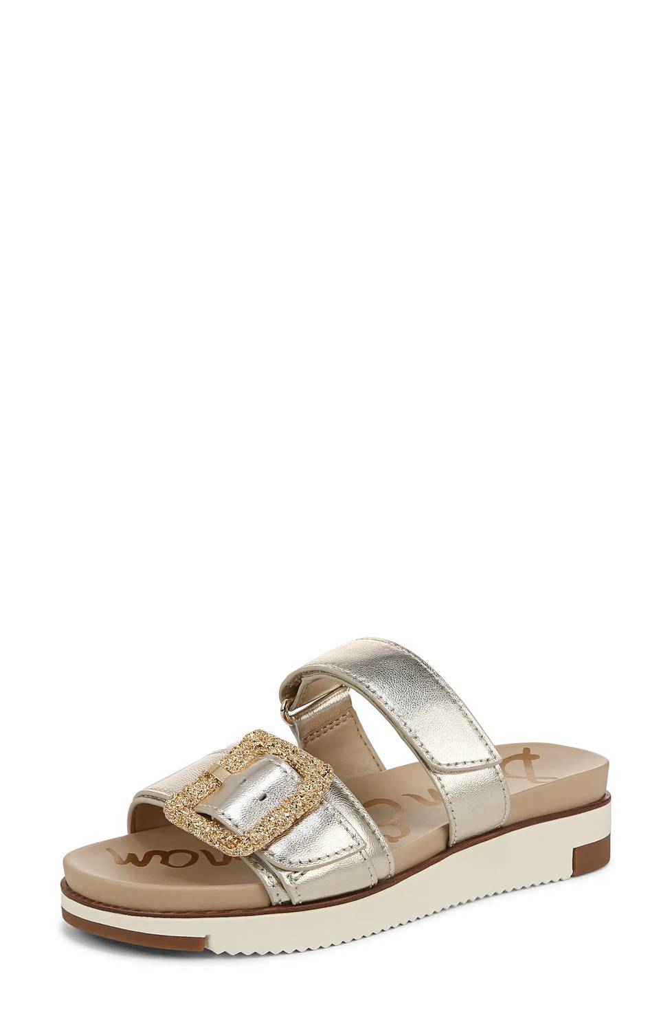 Classicly cute and all-day-wearable. We love this sandal. Step into style with the Women's Adrianna 2 Sandal by Sam Edelman, where modern elegance meets comfort. Crafted with metallic leather straps, this sandal boasts a chic open-toe design and features an adjustable hook-and-loop strap for a tailored fit. Heel Style: Wedge Heel with a 1-inch height, ideal for those who prefer a minimalist and travel-friendly summer accessory. Material: Leather upper with a synthetic lining and sole, perfectly combining durability with a refined look.