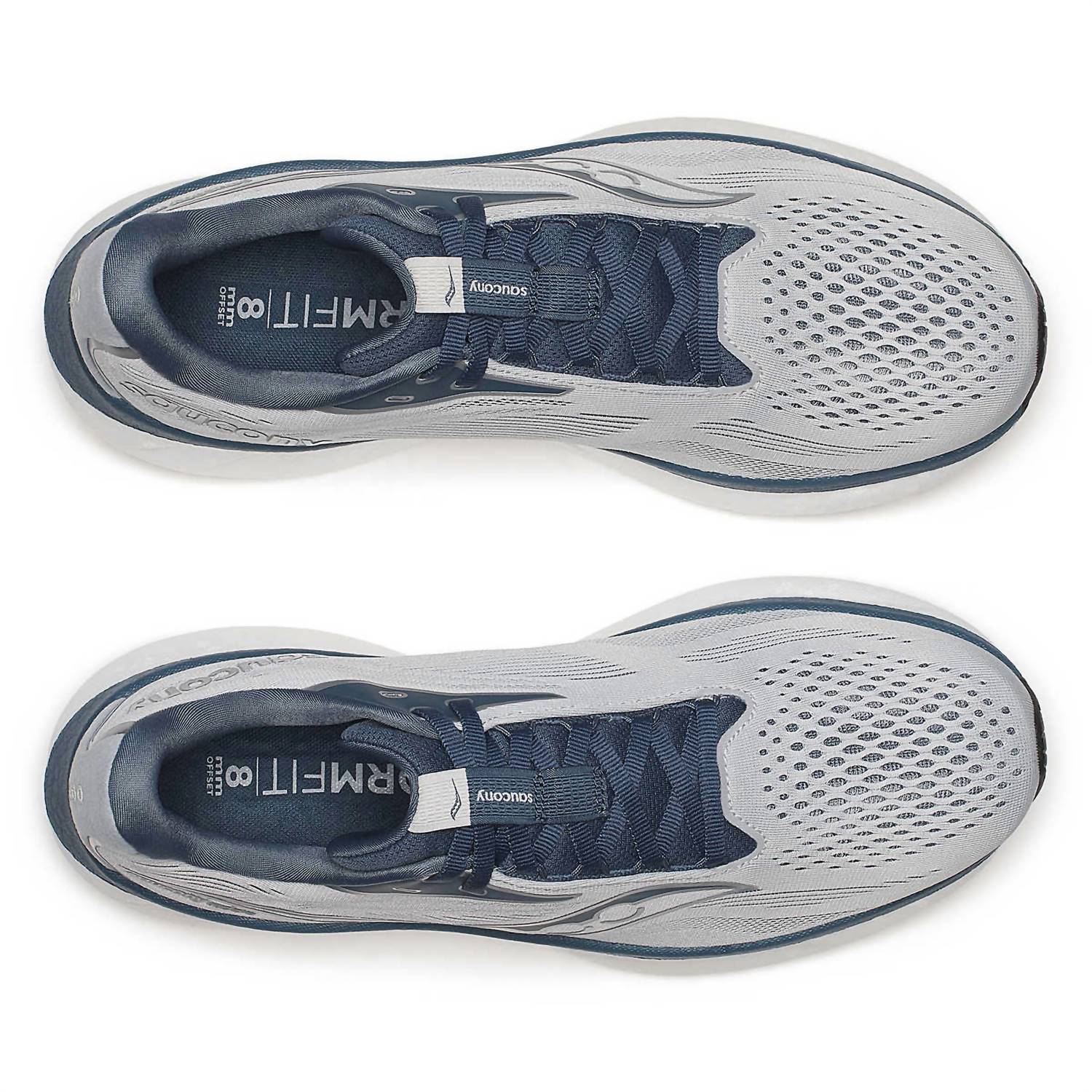 Experience unparalleled comfort and versatility with the Saucony Men's Ride 18 Running Shoes in a sleek Cloud/Dusk color. This athleisure sneaker is your ideal partner for fitness and workout occasions, featuring a round toe design and a flat heel style. With a newly reformulated PWRRUN+ foam, the Ride 18 is lighter, softer, and offers more responsive energy return. The engineered mesh upper enhances breathability and stretch, while the improved rubber durability and traction ensure smooth and stable movement. Made for adults, these shoes are a must-have for your spring running adventures.