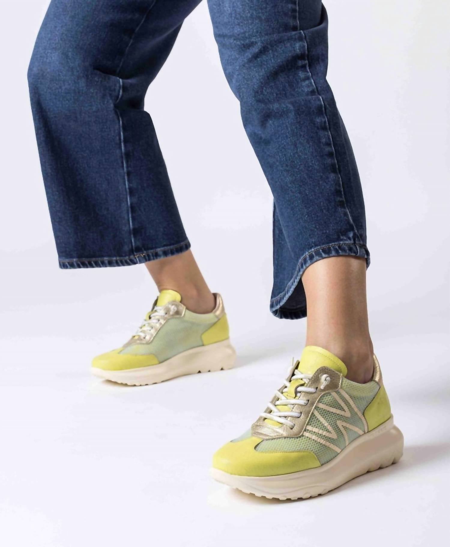 Get your daily steps in with these adorable sneakers. Unveiling the Women's Almeria Sneaker by Seven Wonders, a modern must-have in eye-catching Cyber color. Crafted from a blend of natural grain leather and fabric, it features a natural, eco-leather interior, and offers a comforting eco-leather insole. This sneaker is designed with a closed, soft heel counter and a high-quality material sole, providing a heel height of 2 inches. Closure: Lace-up.