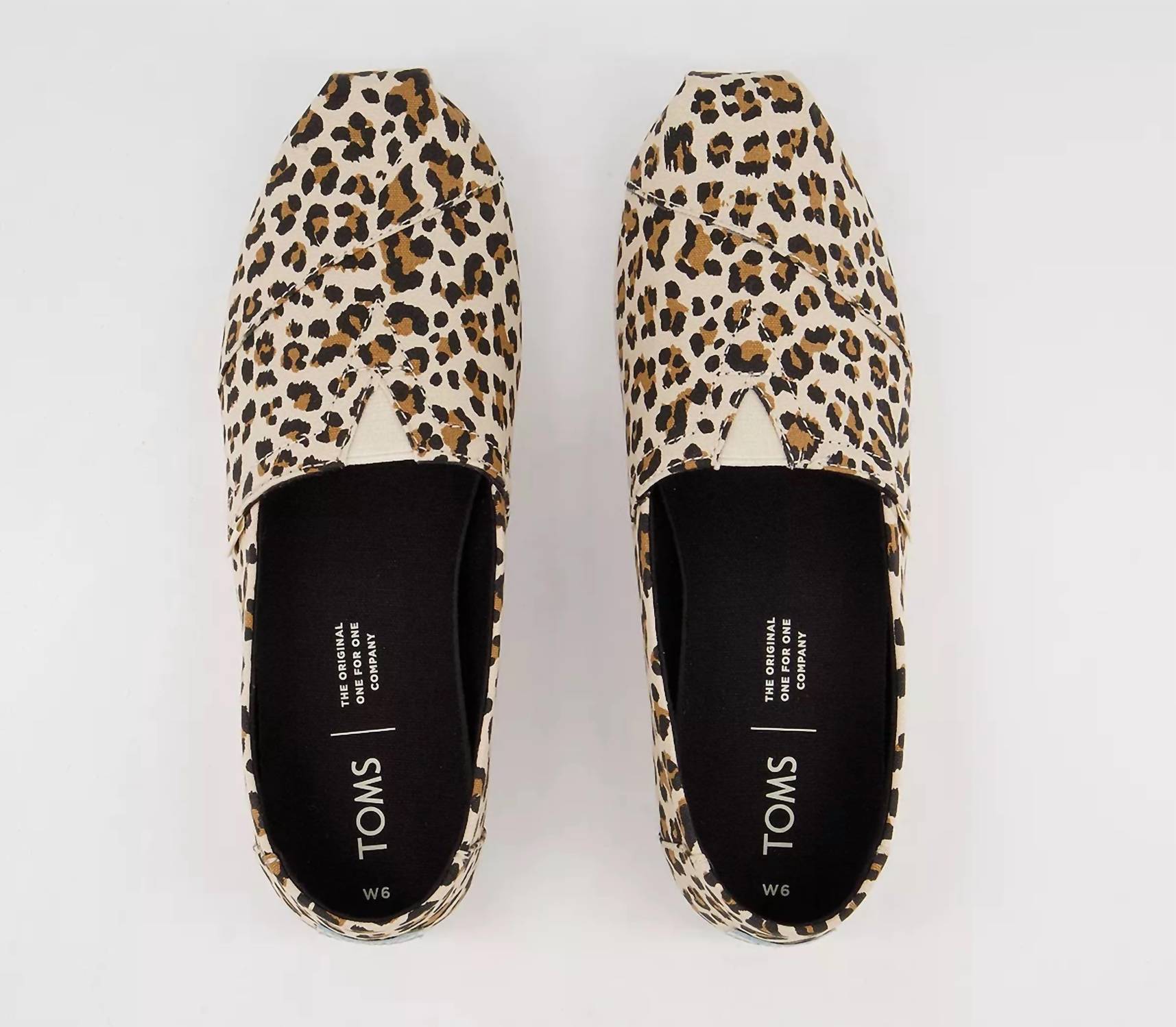 Pair these with white denim or your favorite day dress. Step into style with the Women's Classic Alpargata Espadrilles by TOMS, featuring a striking Birch Leopard Print design. These shoes boast canvas uppers with a vegan-friendly construction and a synthetic sole for durability. Enjoy the comfort of a supportive, removable OrthoLite® Eco LT Hybrid™ insole made with plant-derived and recycled materials. Ideal for a spring refresh, these espadrilles have a round toe shape and a flat heel under 1".