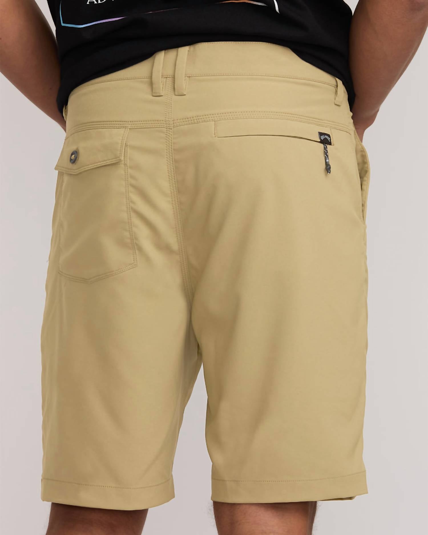 Discover the Surftrek Journey Hybrid Shorts by Billabong, crafted for both aquatic and terrestrial adventures. These men's shorts, in the Gravel colorway, feature a 20" outseam constructed from a 4-way stretch blend of 77% recycled nylon, 20% nylon, and 3% elastane. With a button front and zipper closure, they provide ample storage through multiple pockets, including hand pockets, a back button patch pocket, and a back zipper pocket. Moisture-wicking and quick-drying properties ensure comfort, while branded elements add a sporty flair ideal for streetwear and vacation occasions.